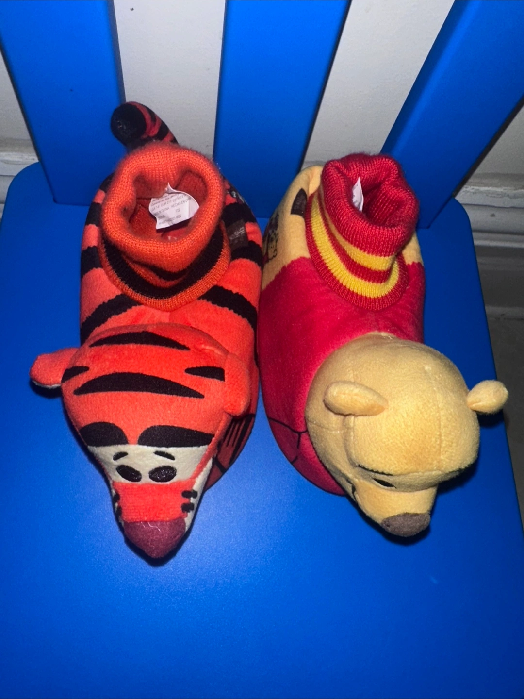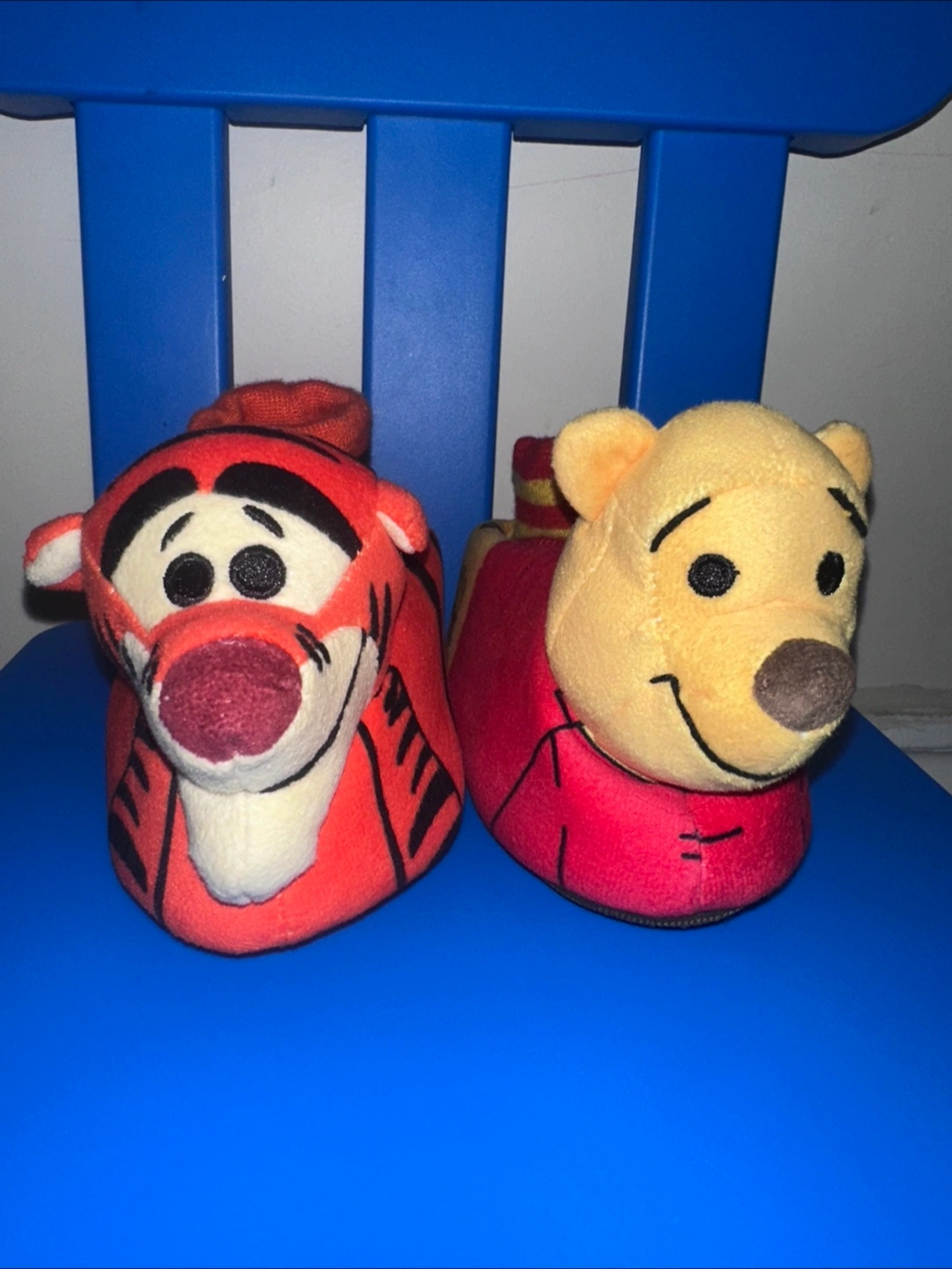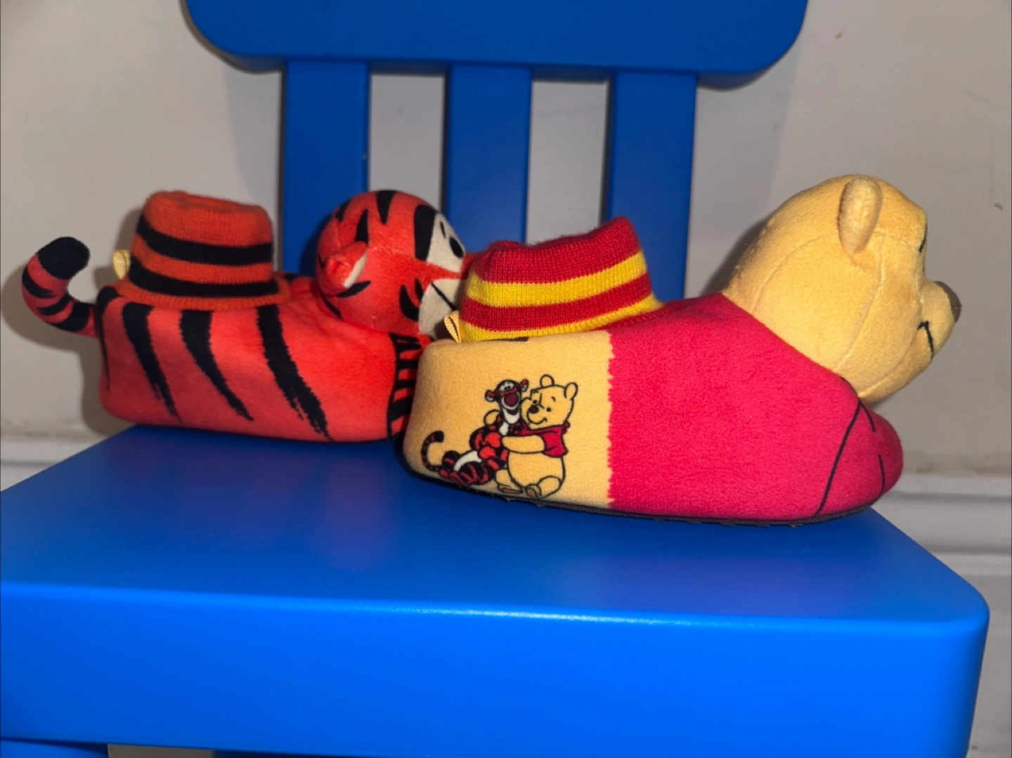 Super cute Winnie the Pooh and Tigger slippers! They feature the classic characters in a fun, cozy design. Perfect for keeping little feet warm and adding a touch of Disney magic to your day