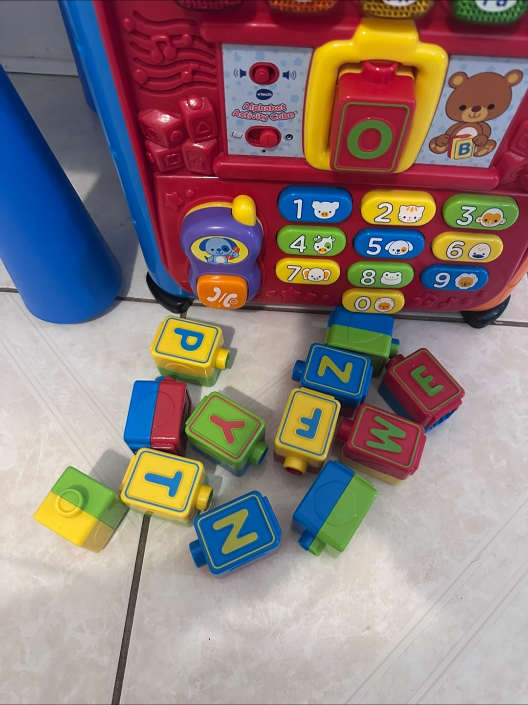 Selling a VTech Alphabet Activity Cube! It's in great condition and ready for a new home. This interactive cube is packed with fun learning activities to help your little one explore letters, numbers, and more. It comes with all the alphabet blocks too!