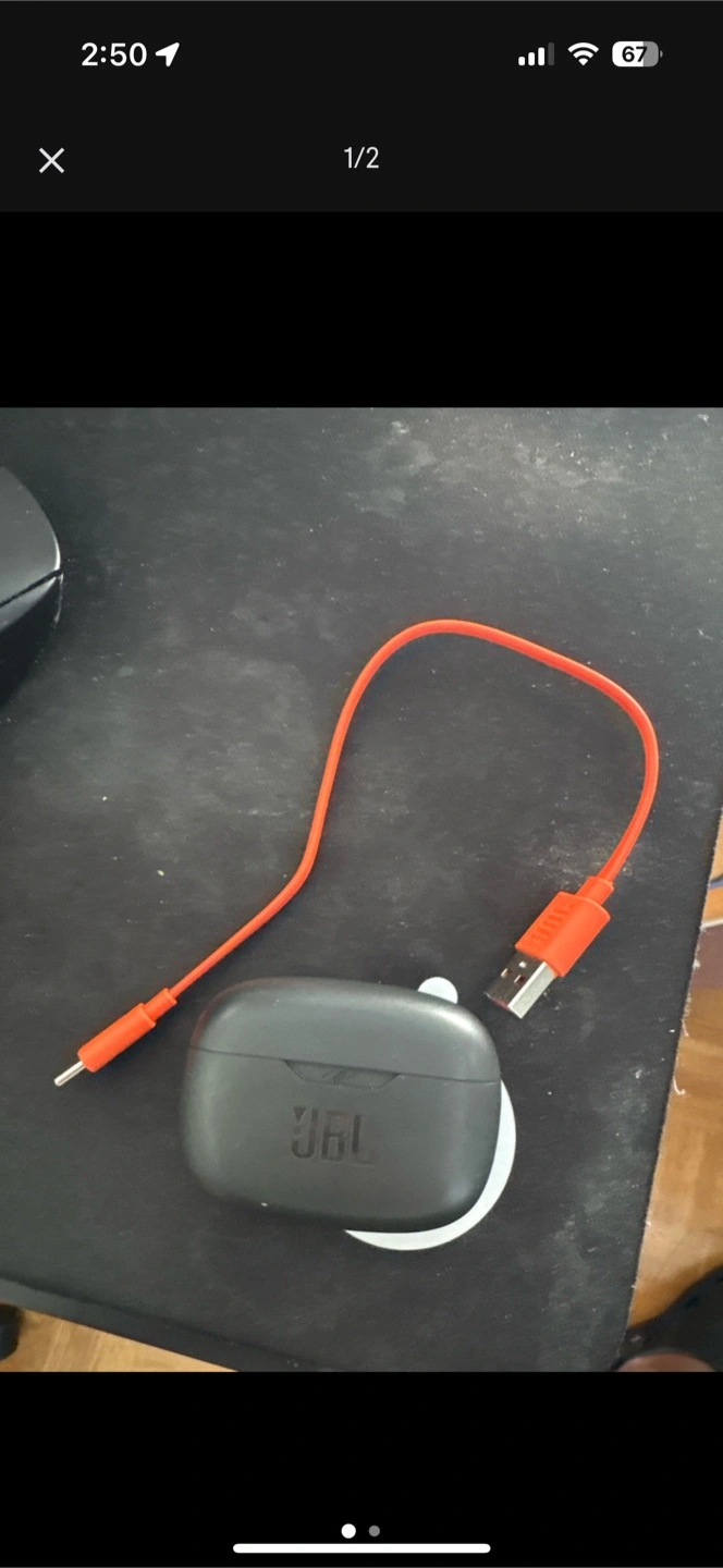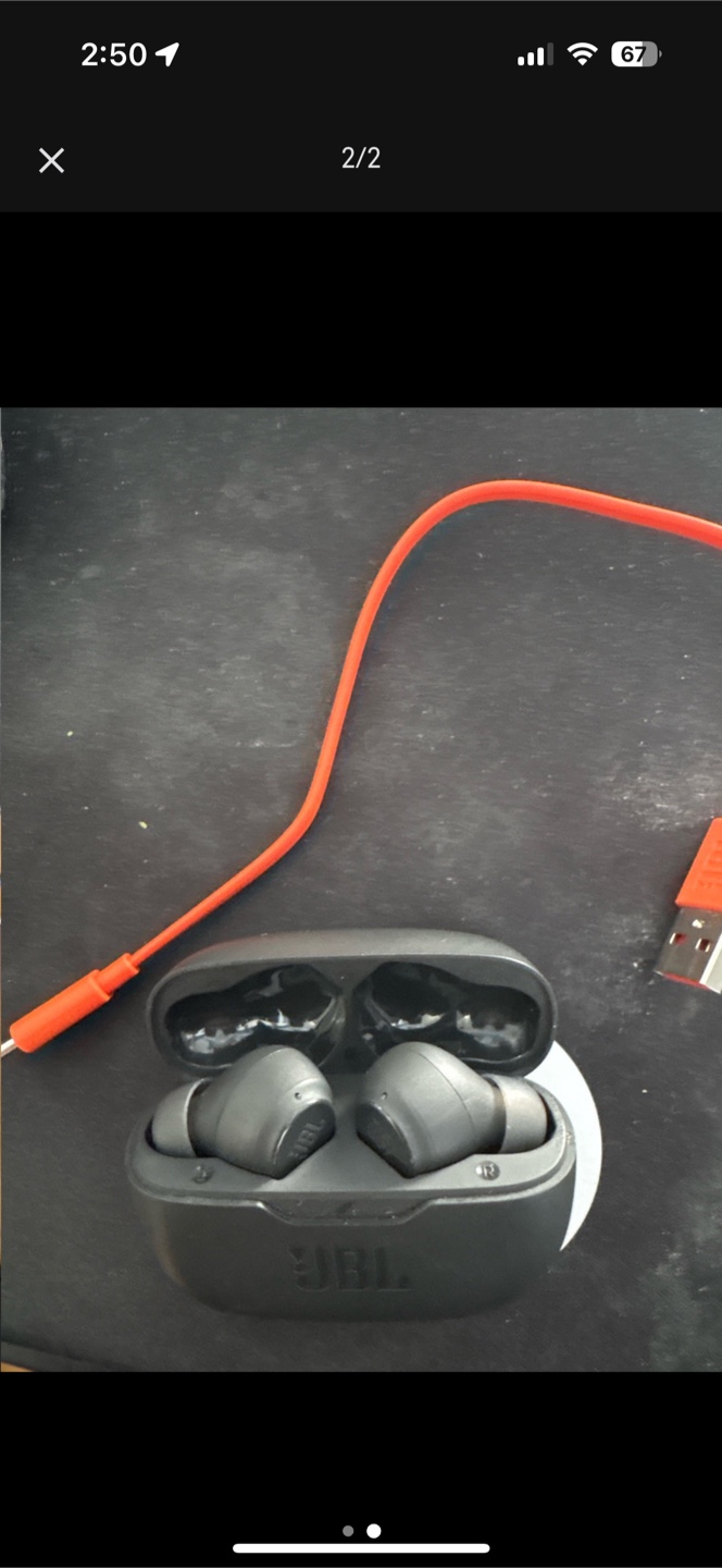 Selling a pair of JBL Wave 300TWS wireless earbuds in black! They come with the charging case and a charging cable. Great for listening to music or podcasts on the go