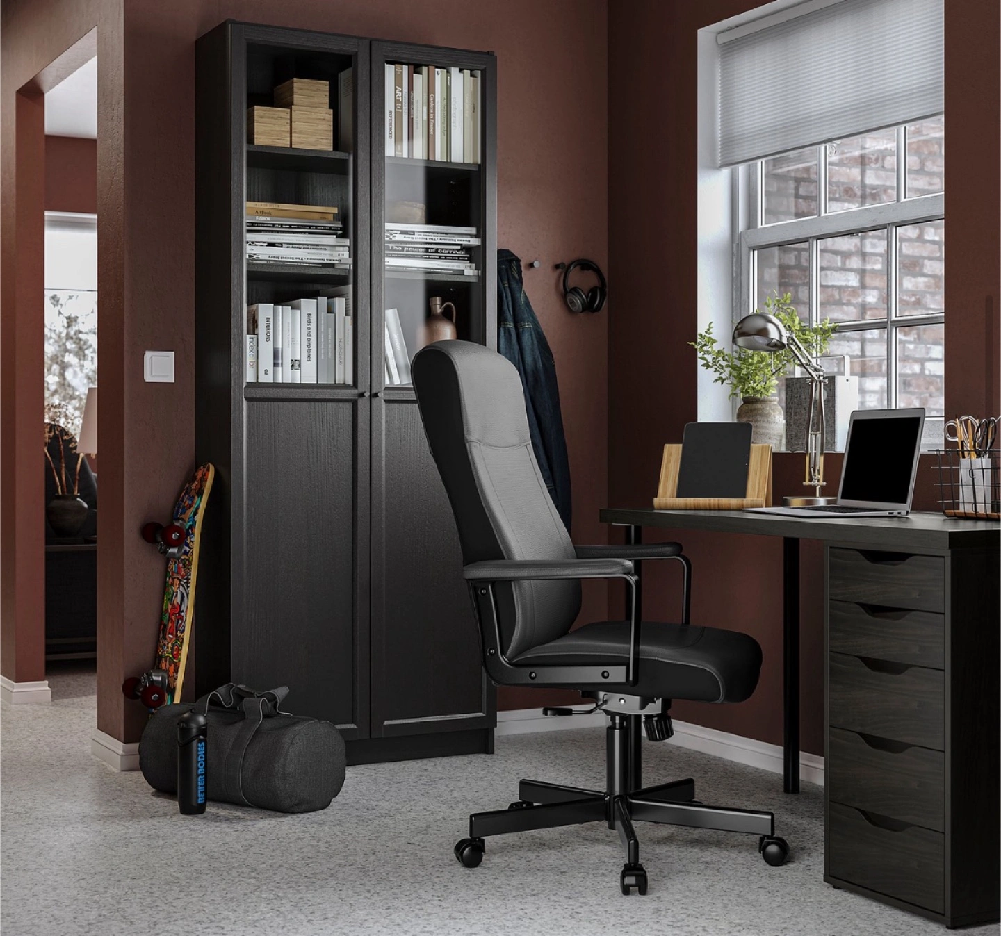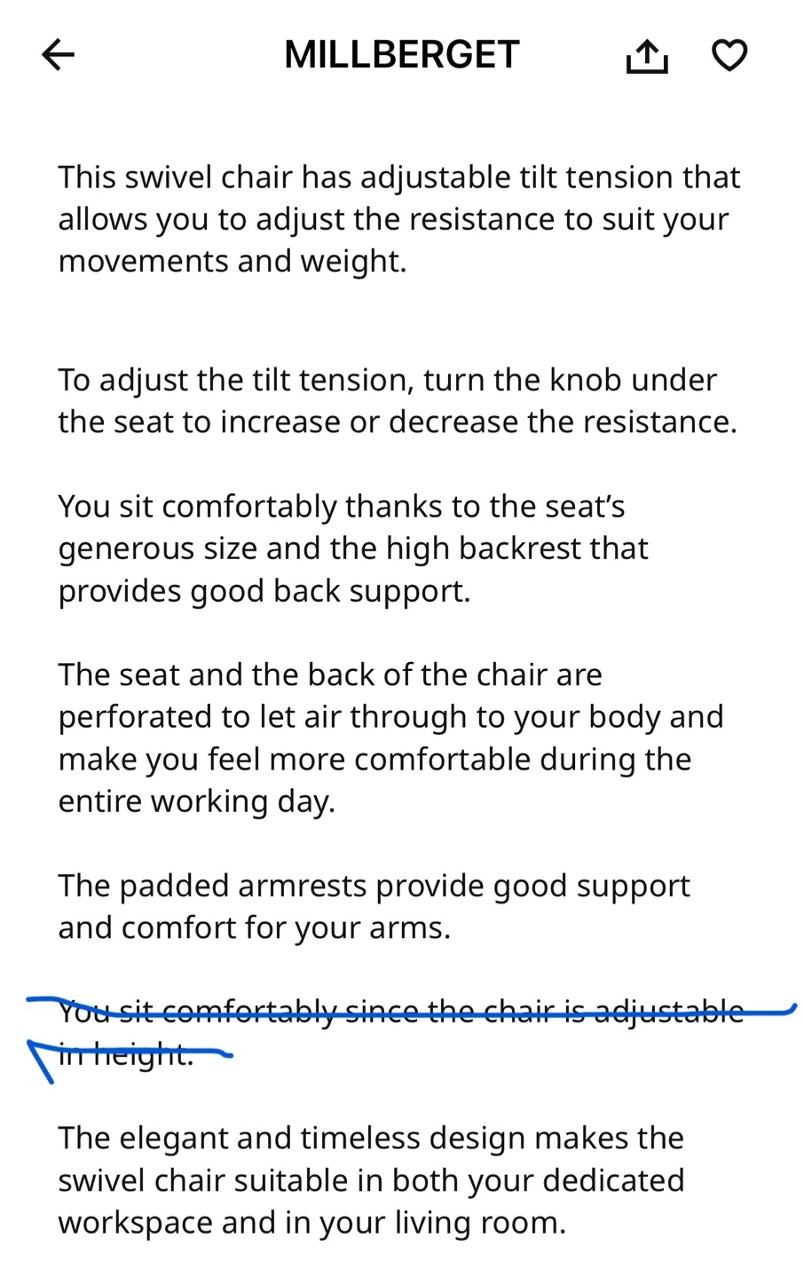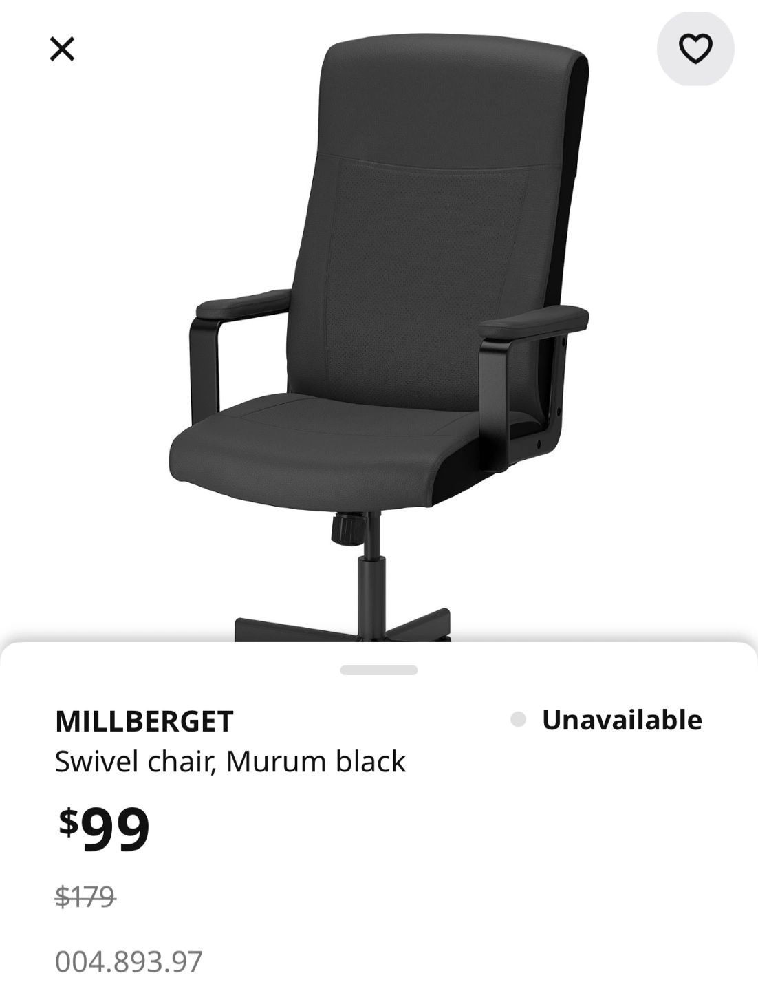 IKEA chair in very good shape no rips/tears. It swivel and rolls np. Only issue chair does not allow for height adjustment, other then that it’s perfect chair