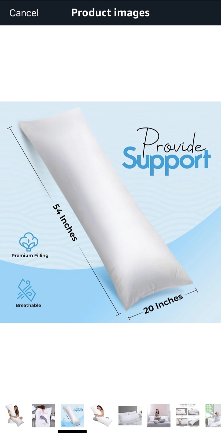 White Body Pillow 20x54 Inch