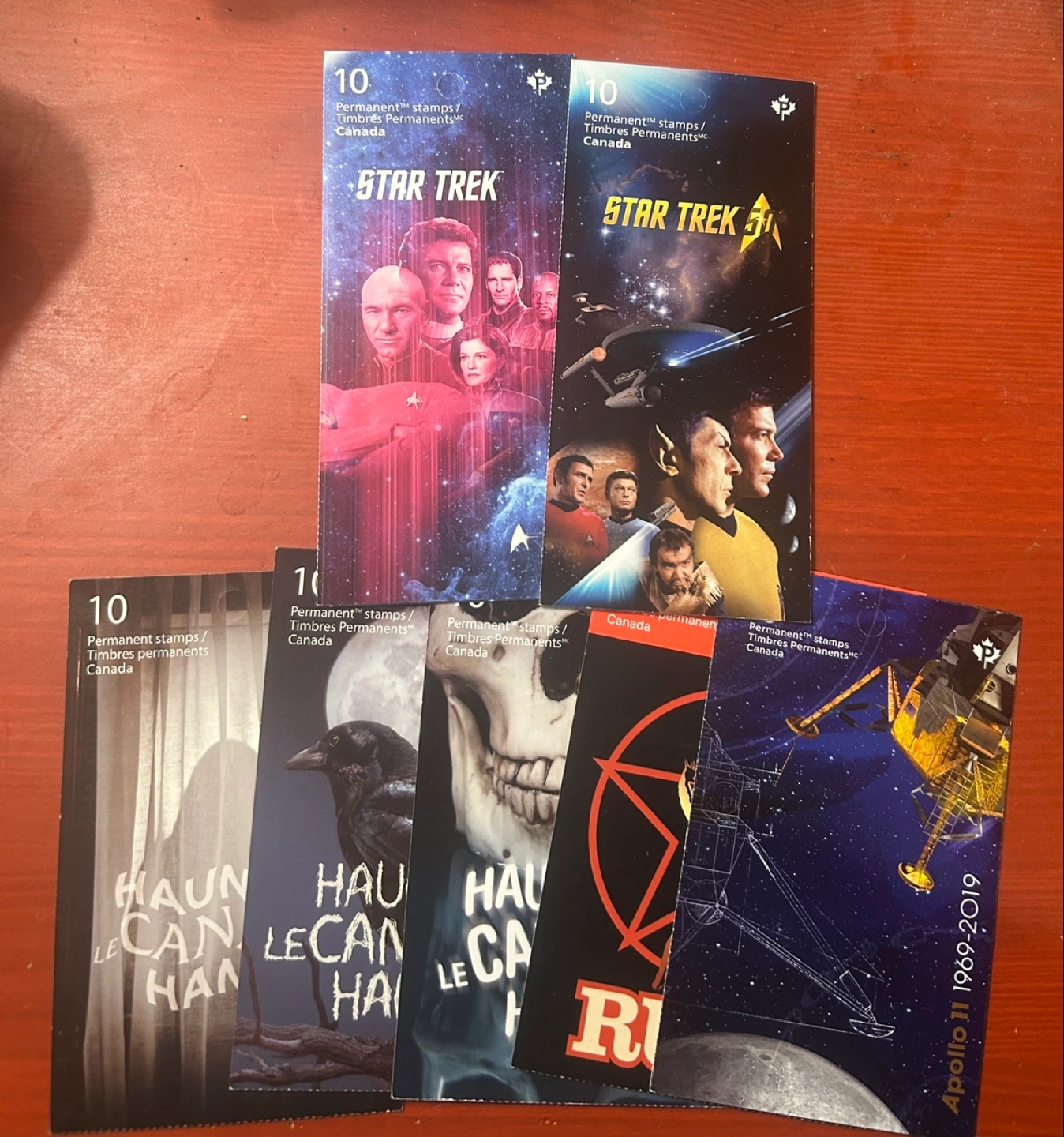 Selling a collection of 7Canada Post permanent stamp booklets! Includes Star Trek, Haunted Canada, and Apollo 11 designs. Each booklet contains 10 stamps. Great for collectors or anyone needing postage!