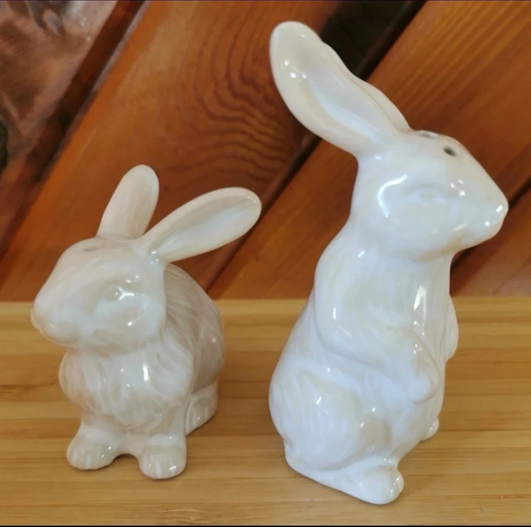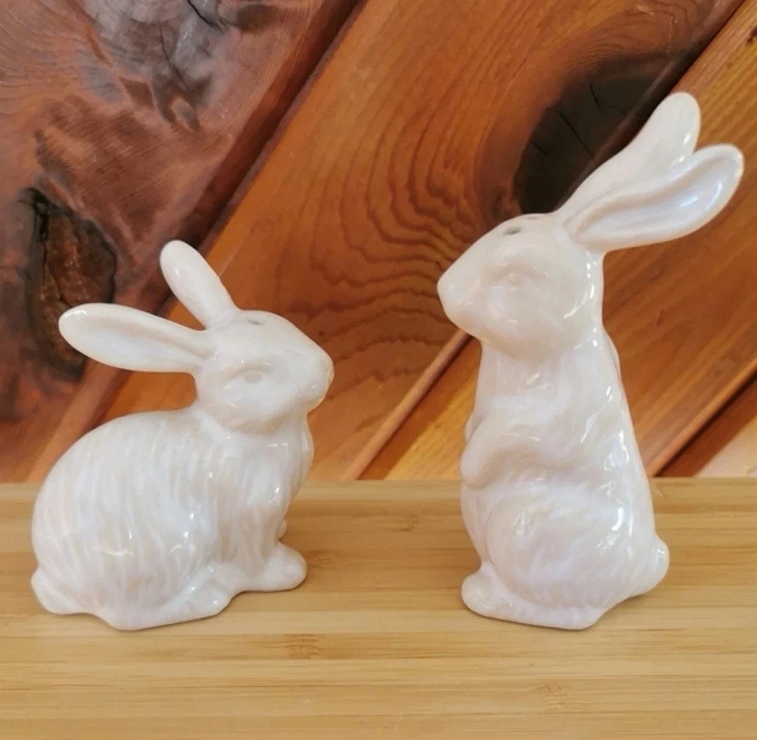 Beautiful Vintage Porcelain Bunny Salt and Pepper Shakers