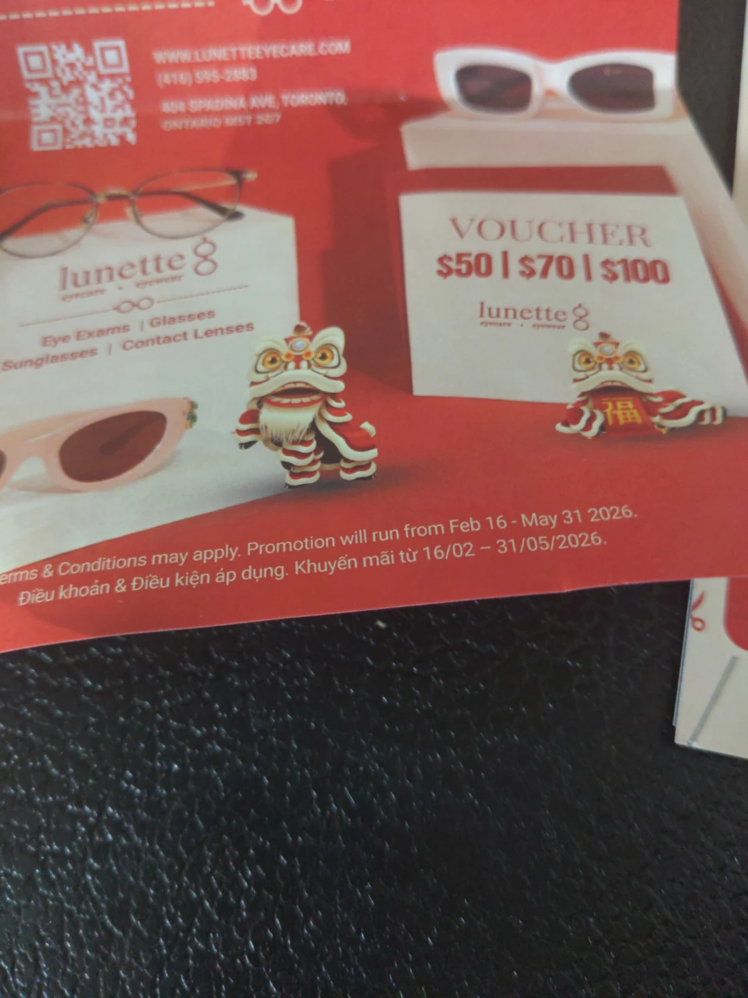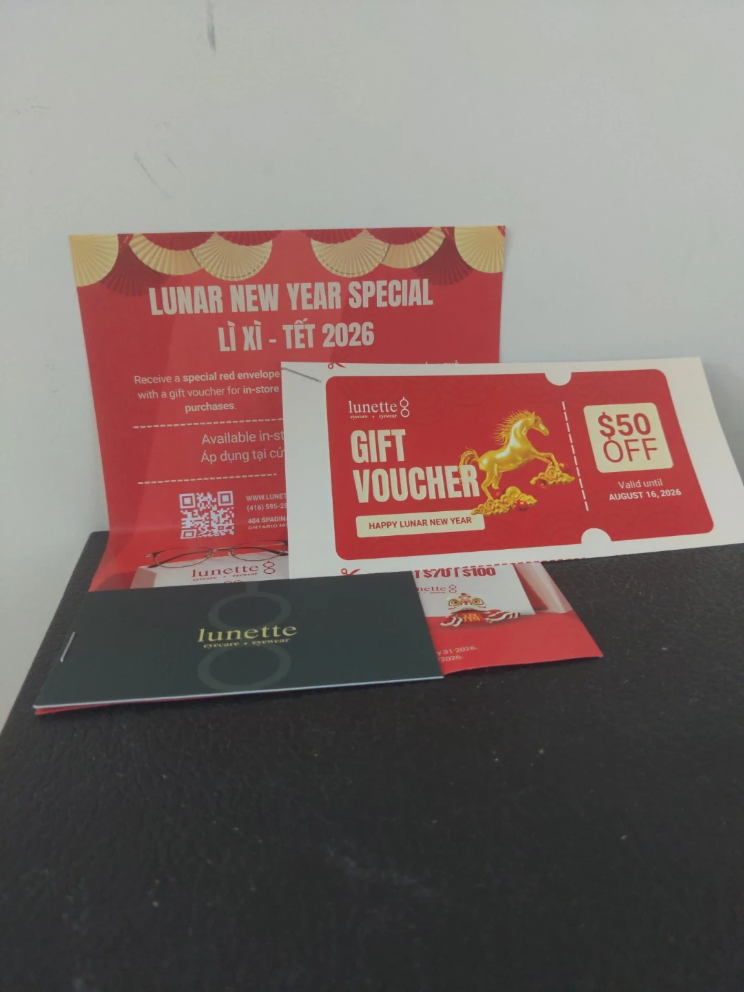 This is a $50 off gift voucher from Lunette 8 Eyewear. It's valid until August 15, 2026. Special Lunar New Year offer from a Vietnamese owned business