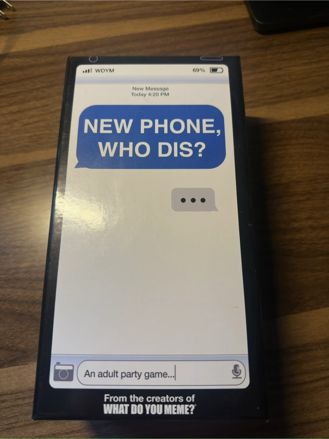 This is the New Phone, Who Dis? adult party game. It includes the full deck of cards and instructions. It's a fun game from the creators of What Do You Meme?