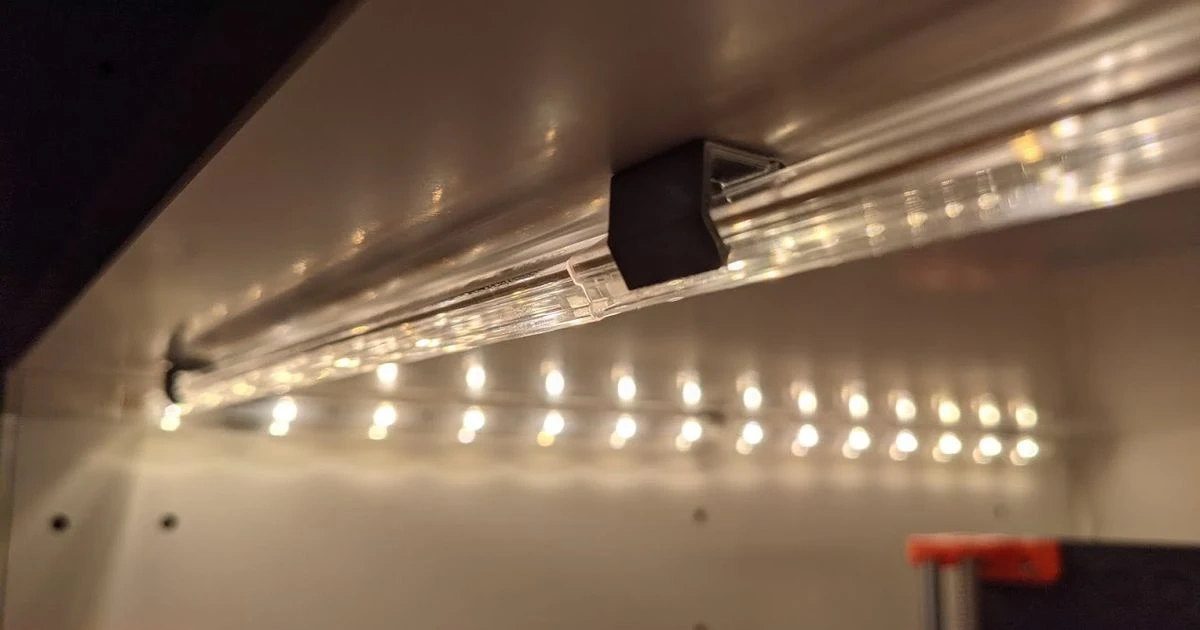 Two LEDBERG LED lighting strips. Each strip is 50cm long and includes a power adapter and mounting clips. These lights are perfect for accent lighting in cabinets or shelves.