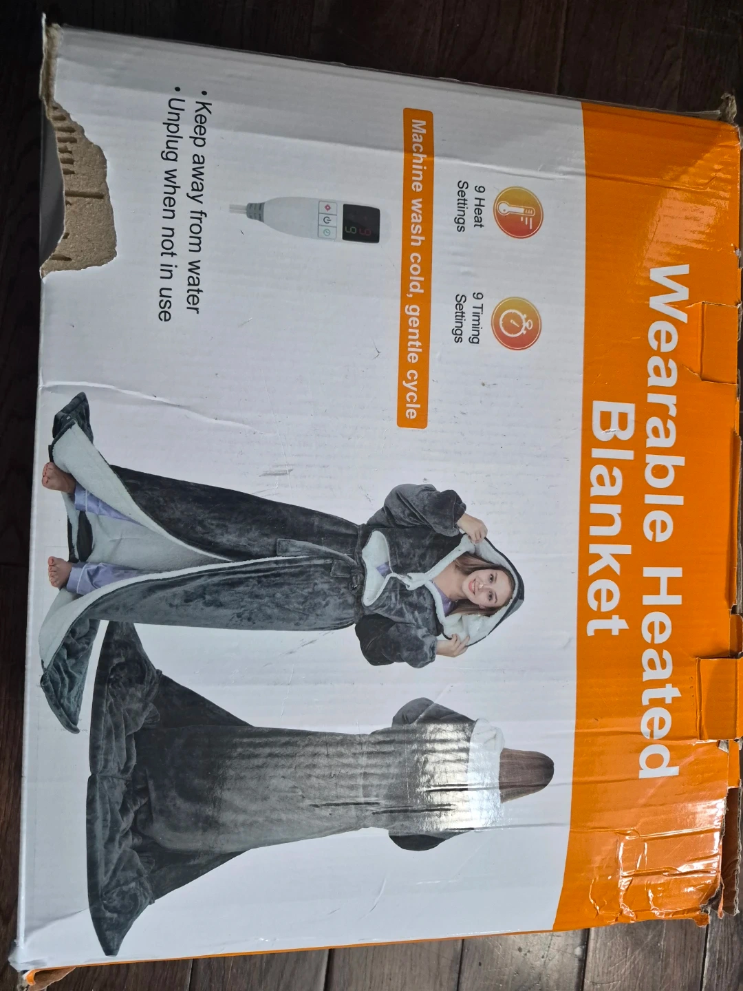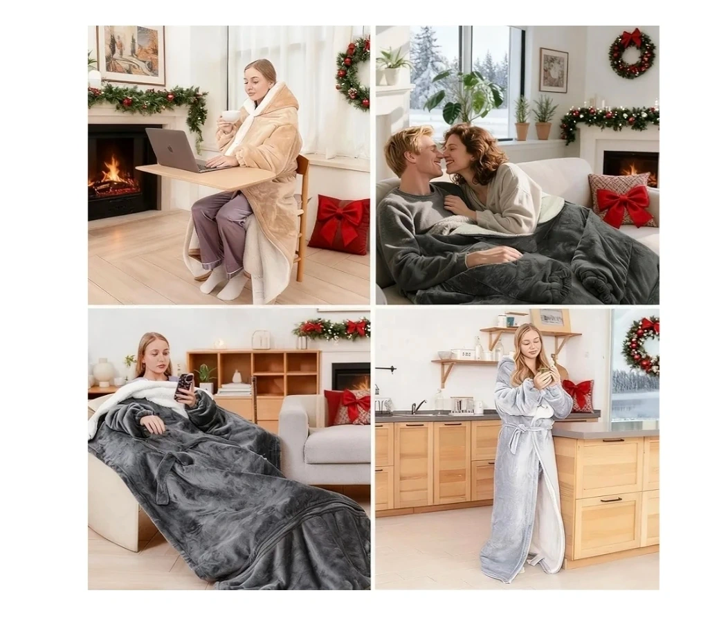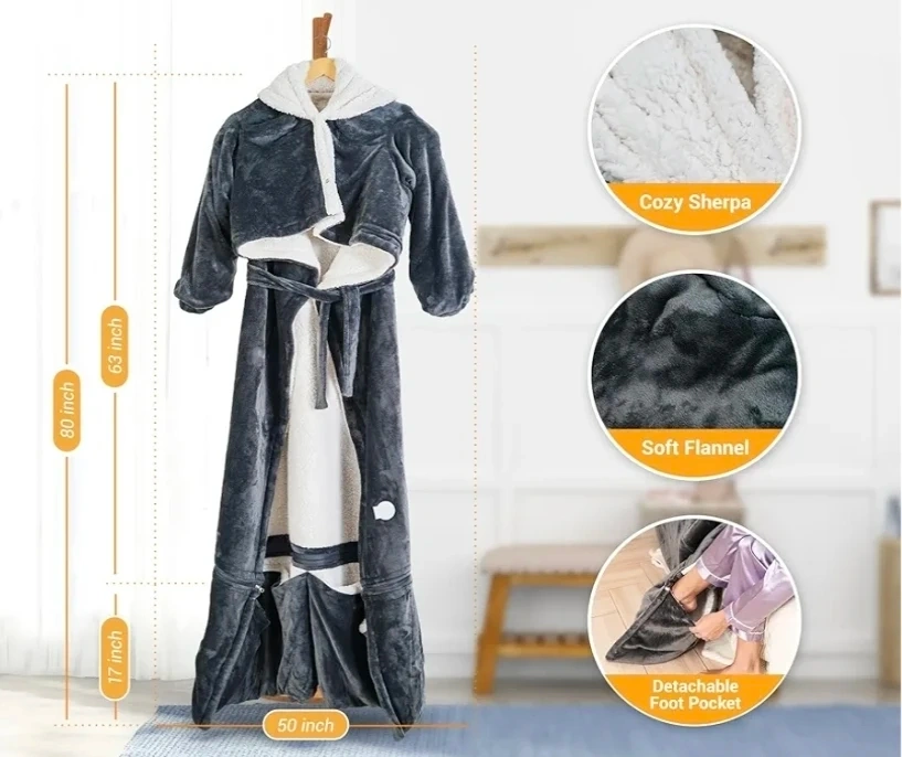 Grey Heated Blanket with Sleeves and Foot Pocket