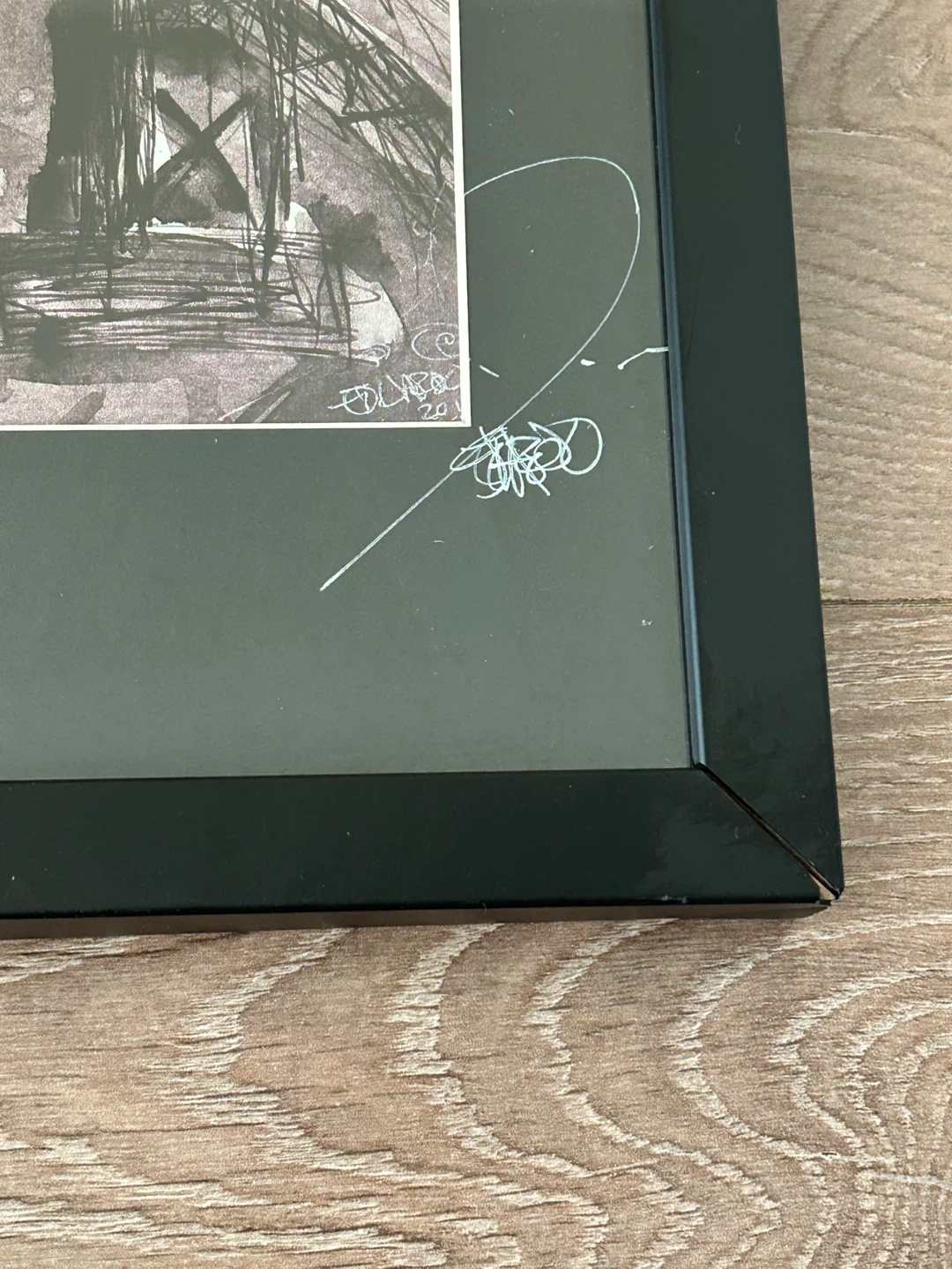 The artwork is in excellent condition with no fading or marks. The frame shows minor cosmetic wear (chipping/scuffing) on the bottom right corner, reflected in the price. Please see photos for a detailed view.