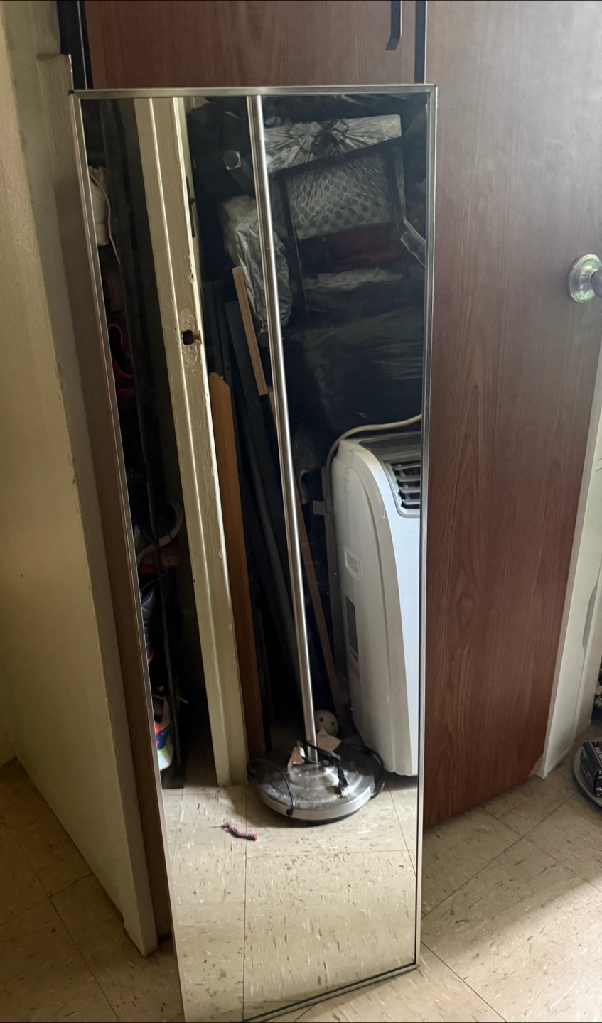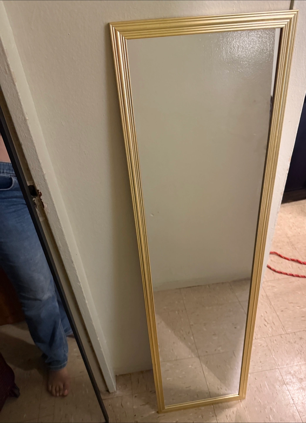 Selling a full length silver mirror 53” x 16”. that can be hung over a door! It's in great condition and ready to find a new home. A gold mirror lightweight that can be stick on wall 51 x 15. $10. Perfect for checking out your outfit before heading out.