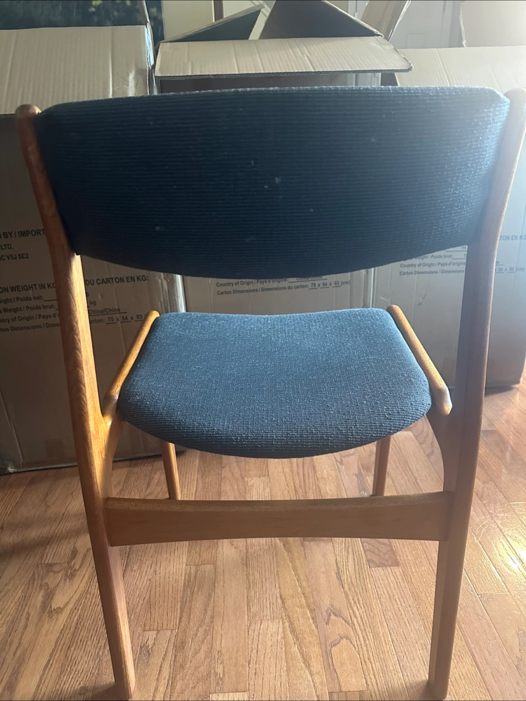 Set of danish chairs! They're in good condition and ready to find a new home. The chairs have a wooden frame and a comfortable upholstered seat and back.