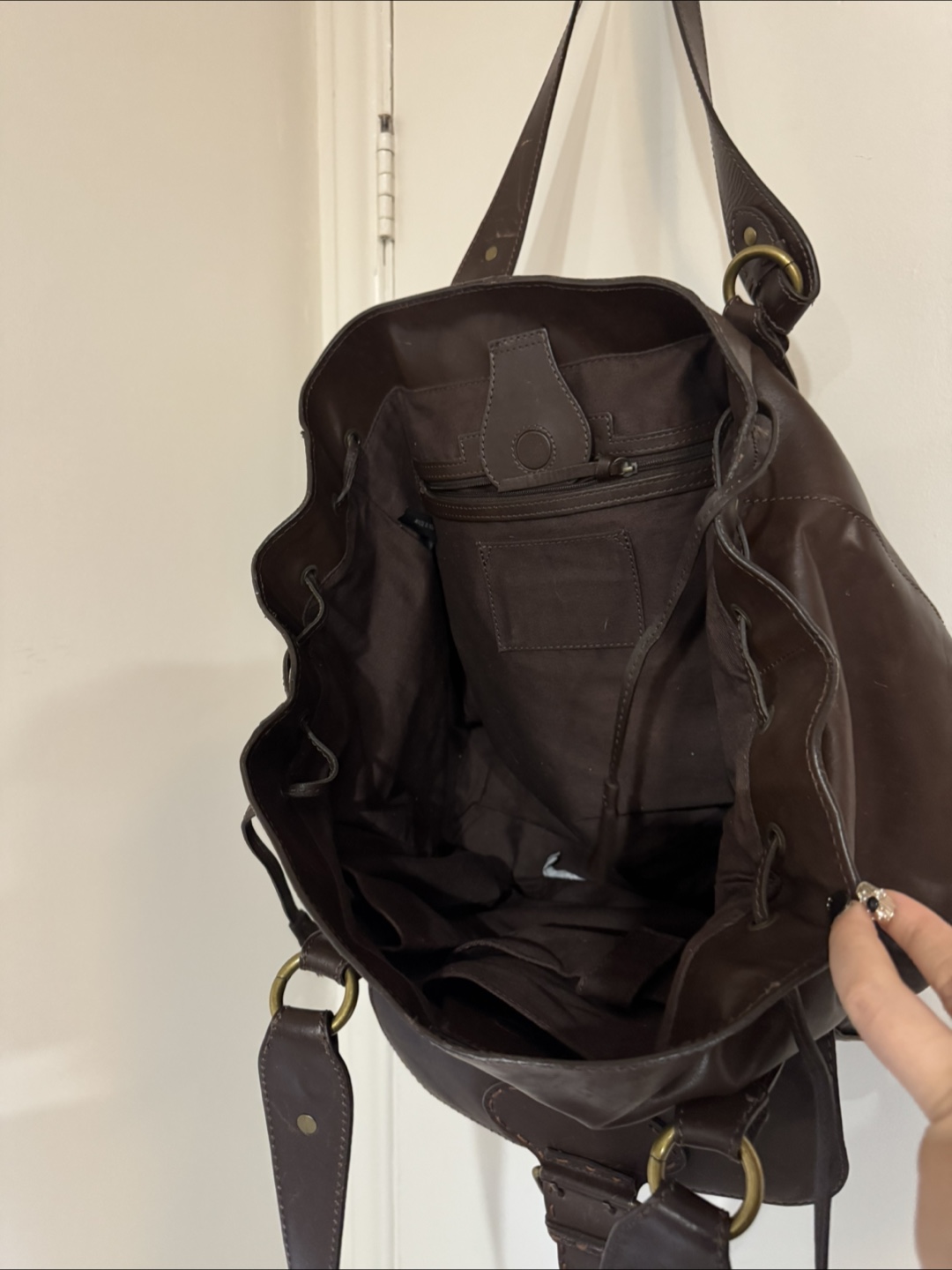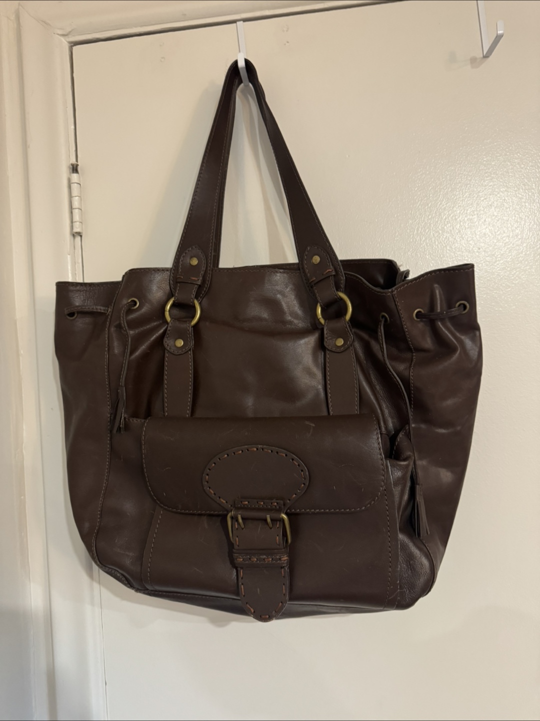 A stylish brown leather tote bag up for grabs! It's in great condition and ready for a new home. Perfect for carrying your everyday essentials with a touch of class