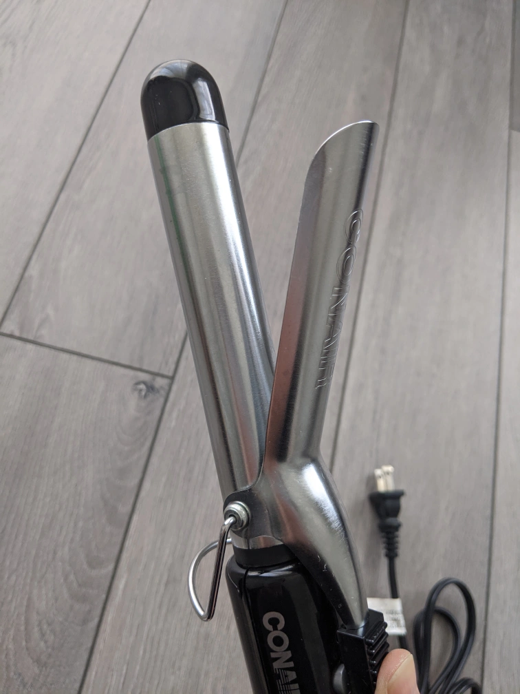 Achieve salon-quality curls at home with the Conair curling iron, featuring variable heat settings for all hair types. This curling iron is in used condition and has been well-maintained.