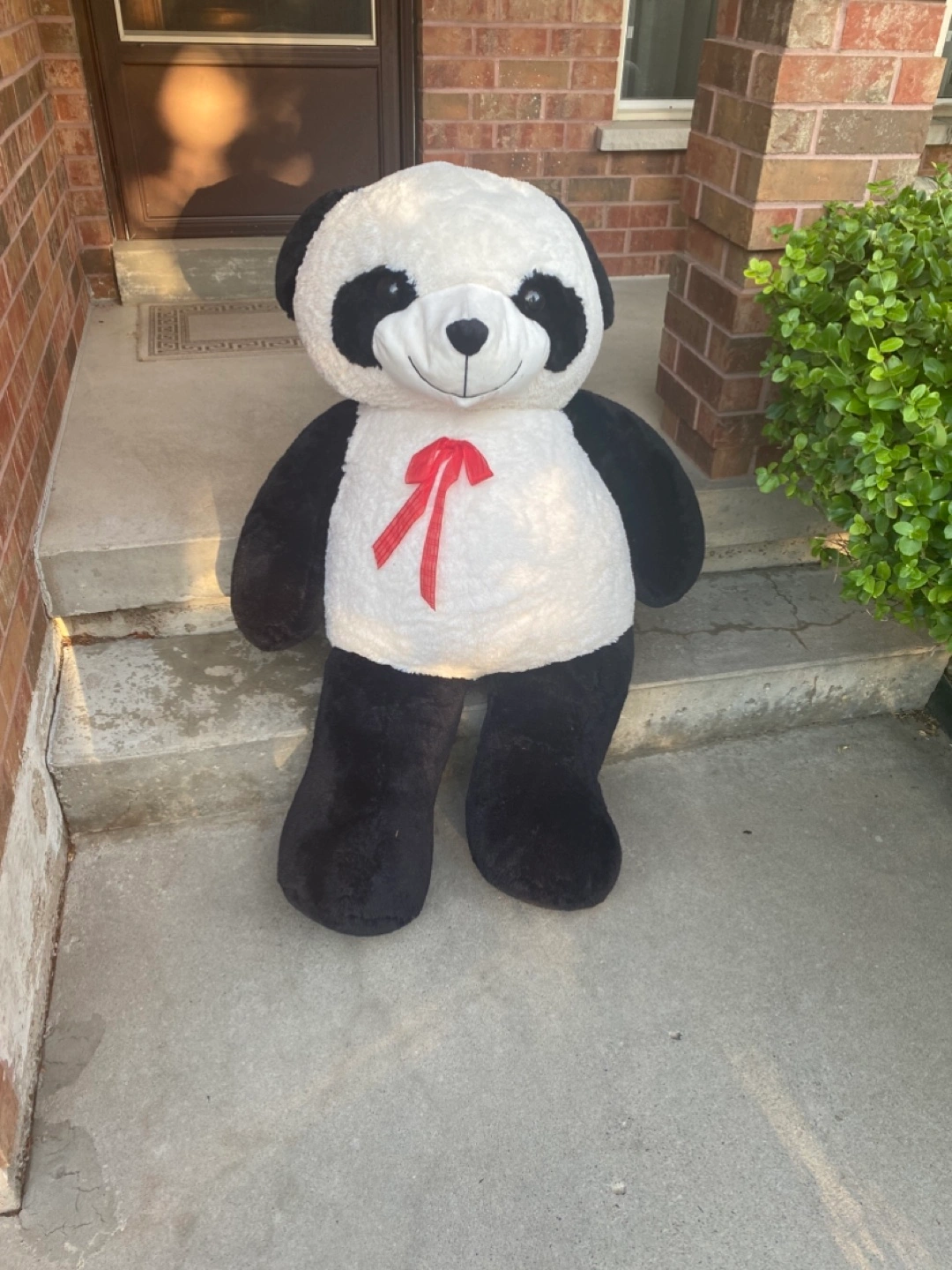Selling a giant panda plush toy! It's in great condition and would be perfect for a kid's room or as a fun decorative piece