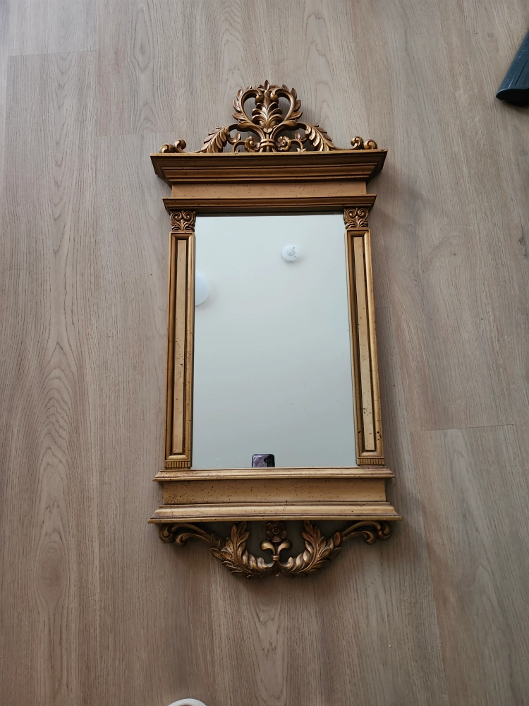 Selling a lovely ornate gold mirror. It would be a beautiful addition to any room! pick up only! W44cm × H 74 cm
