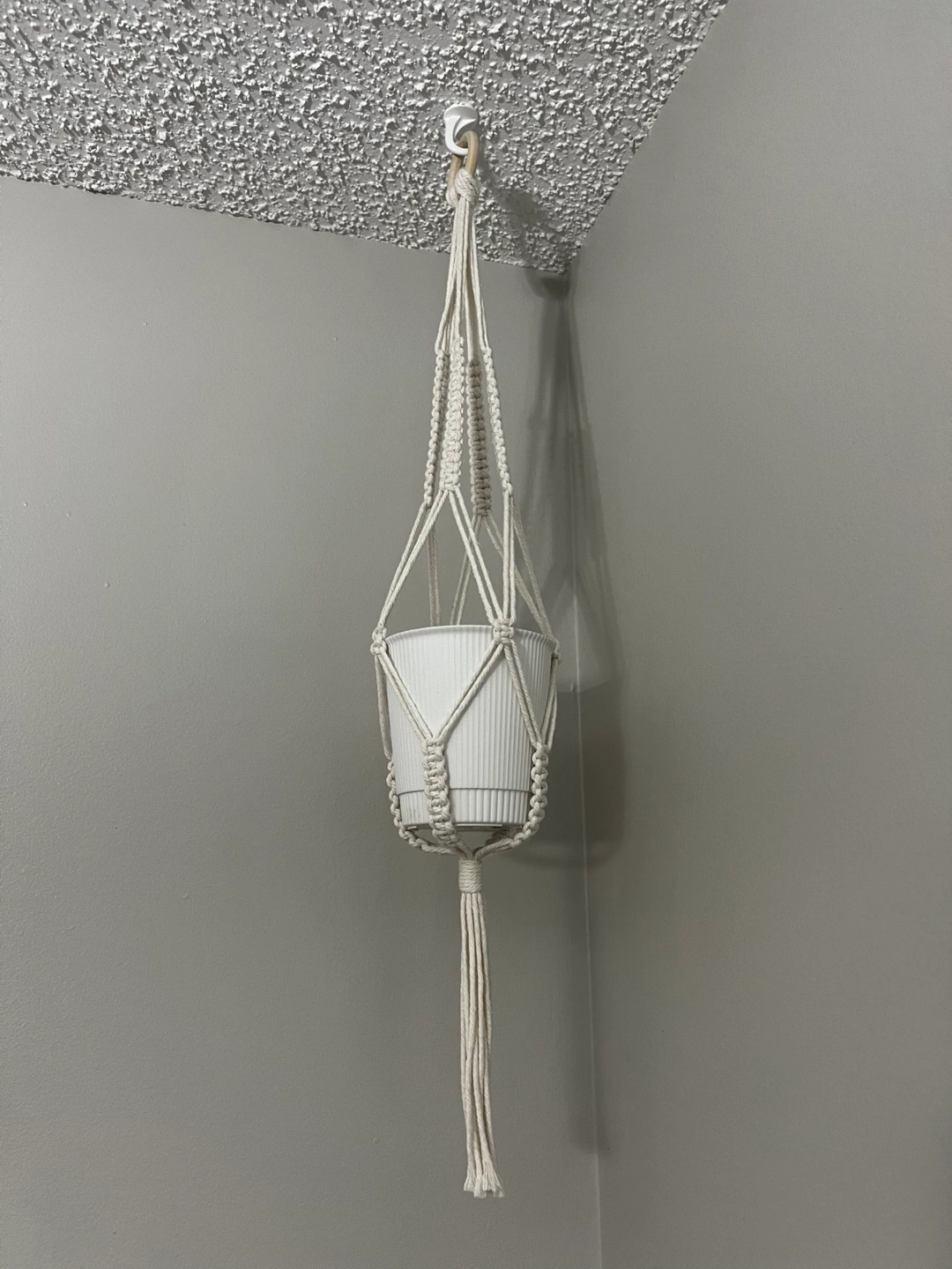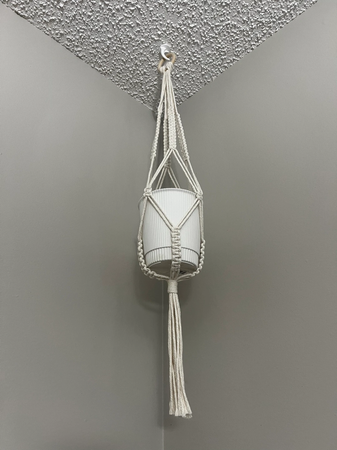 Add a touch of boho charm to your home with this beautiful, handmade macrame plant hanger! Crafted with soft, natural cotton cord.