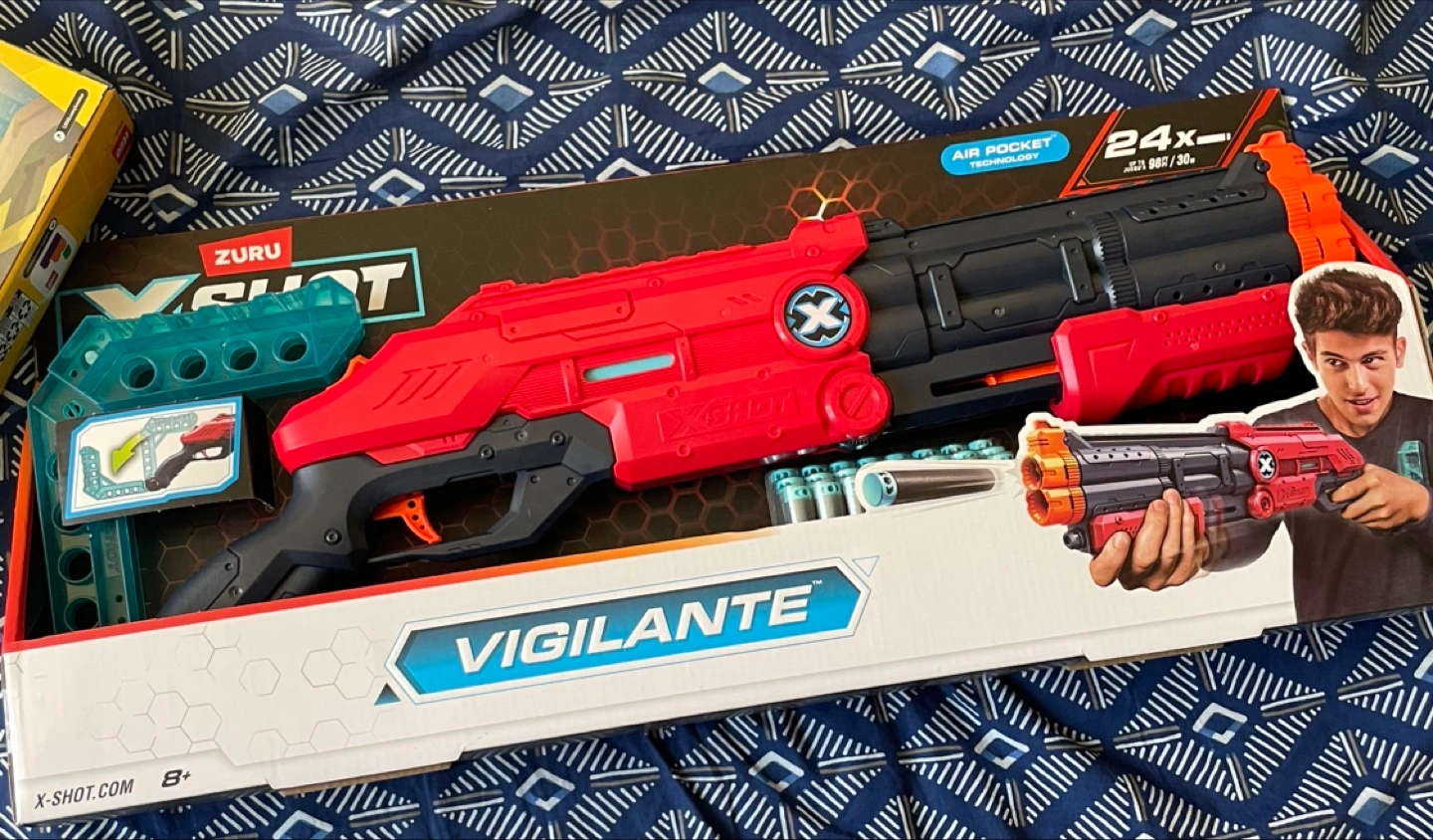 Selling a brand new Zuru X-Shot Vigilante blaster! It's still in its original packaging and ready for some action-packed fun. Comes with air pocket technology and 24 darts. Perfect for kids aged 8+!