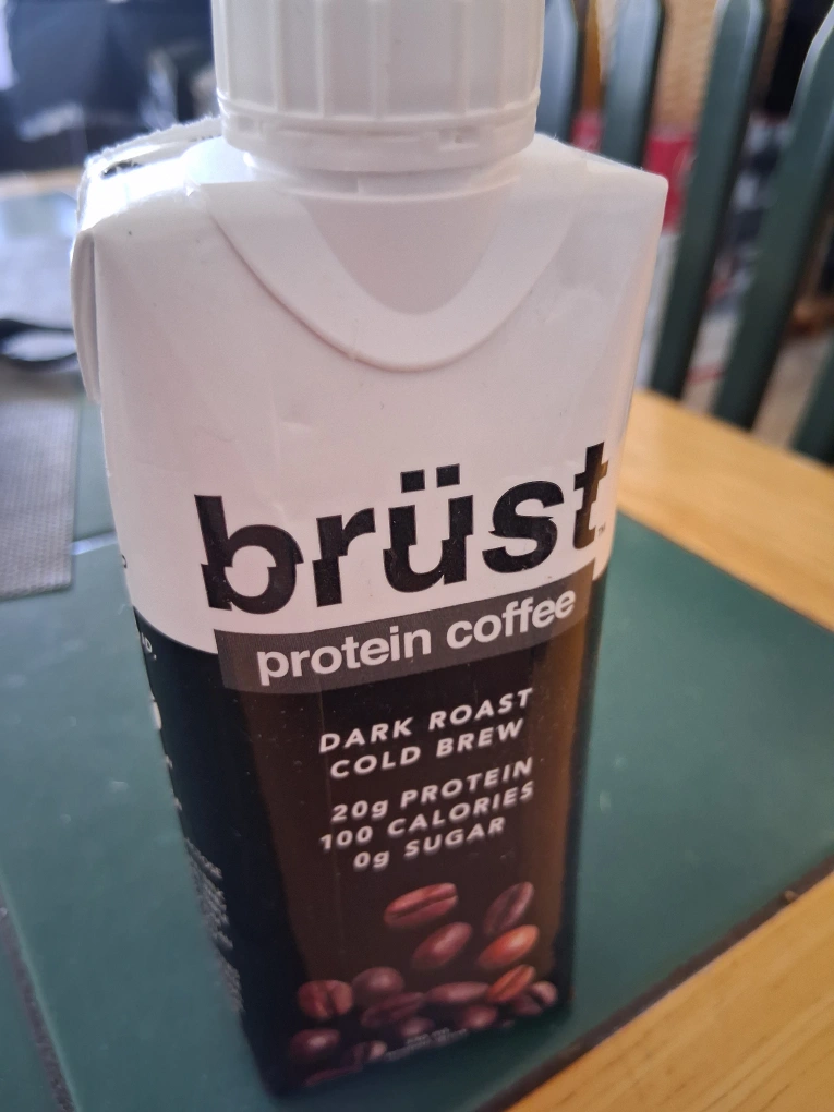 Brüst protein coffee in dark roast cold brew flavour! Each drink has 20g of protein, 100 calories, and 0g of sugar, almost full box (16 of 18)