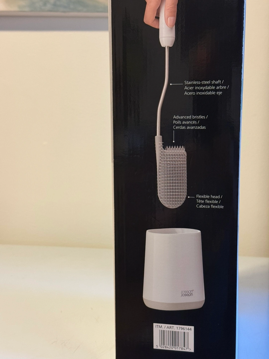 Selling ONE brush and holder NEW (sold at Costco as a pair but I only need one. This is a flat style brush and flat holder that takes up less space. Unique “bristles” are drip less and remain clean.