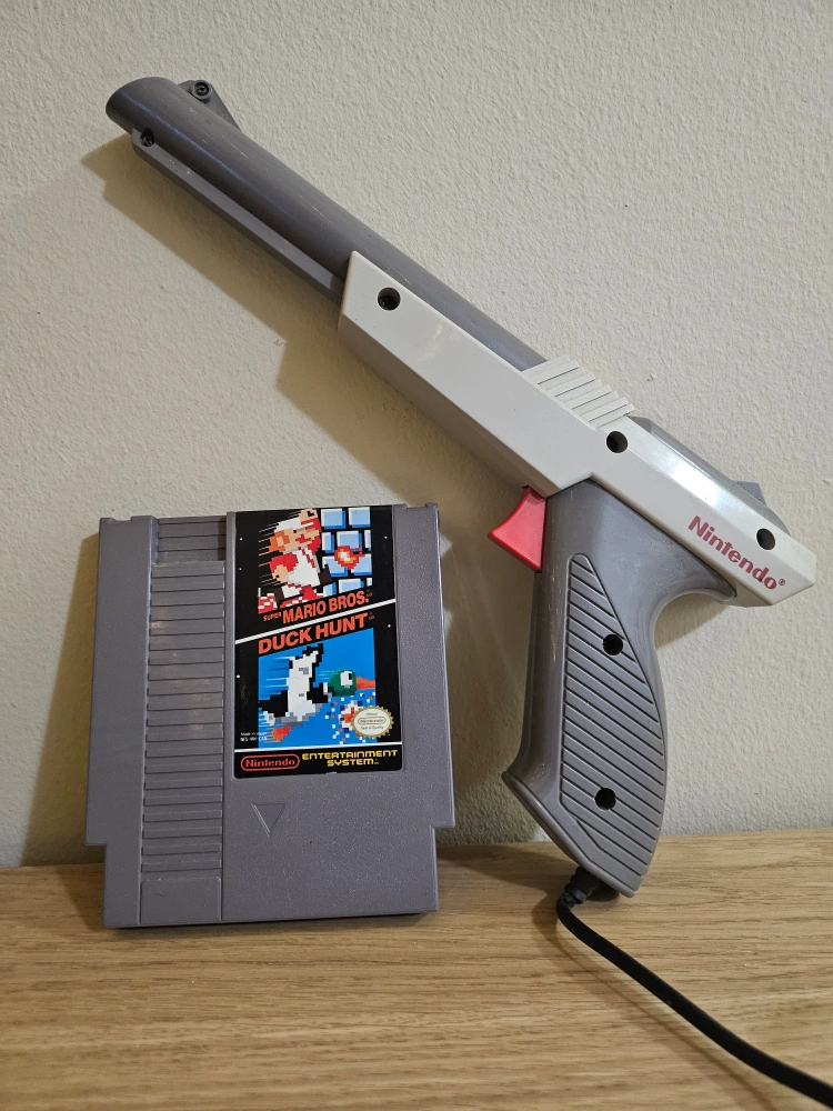 Selling a classic Nintendo NES Zapper light gun and Duck Hunt combo Super Mario Bros cartridge! A great addition to any retro gaming collection. Bring back some memories with this iconic duo!
