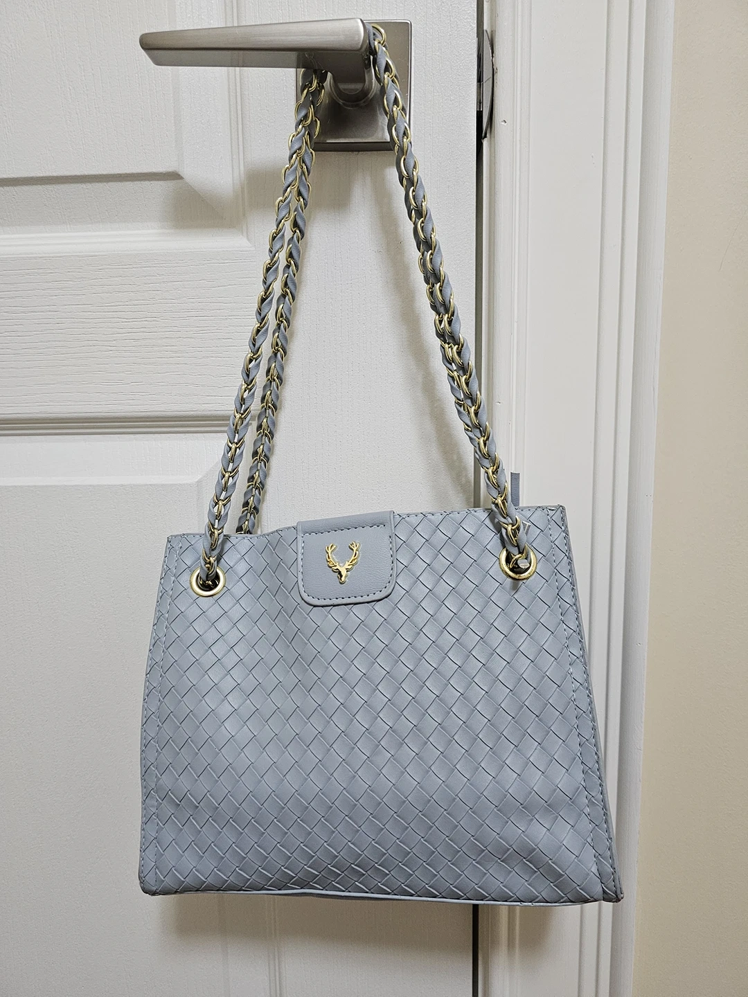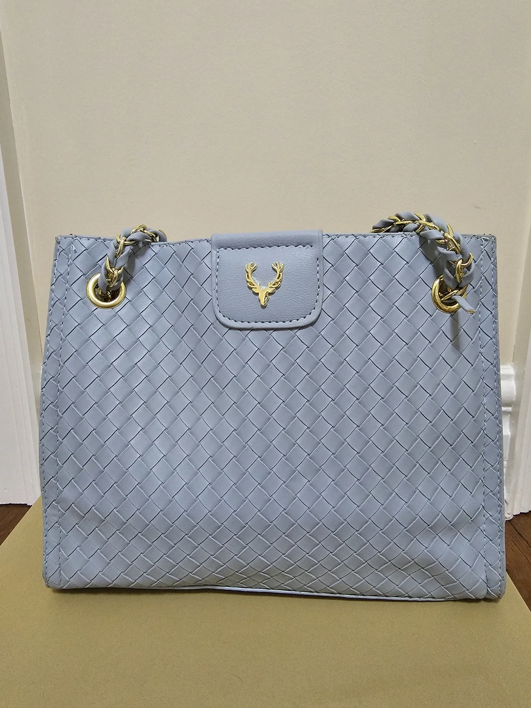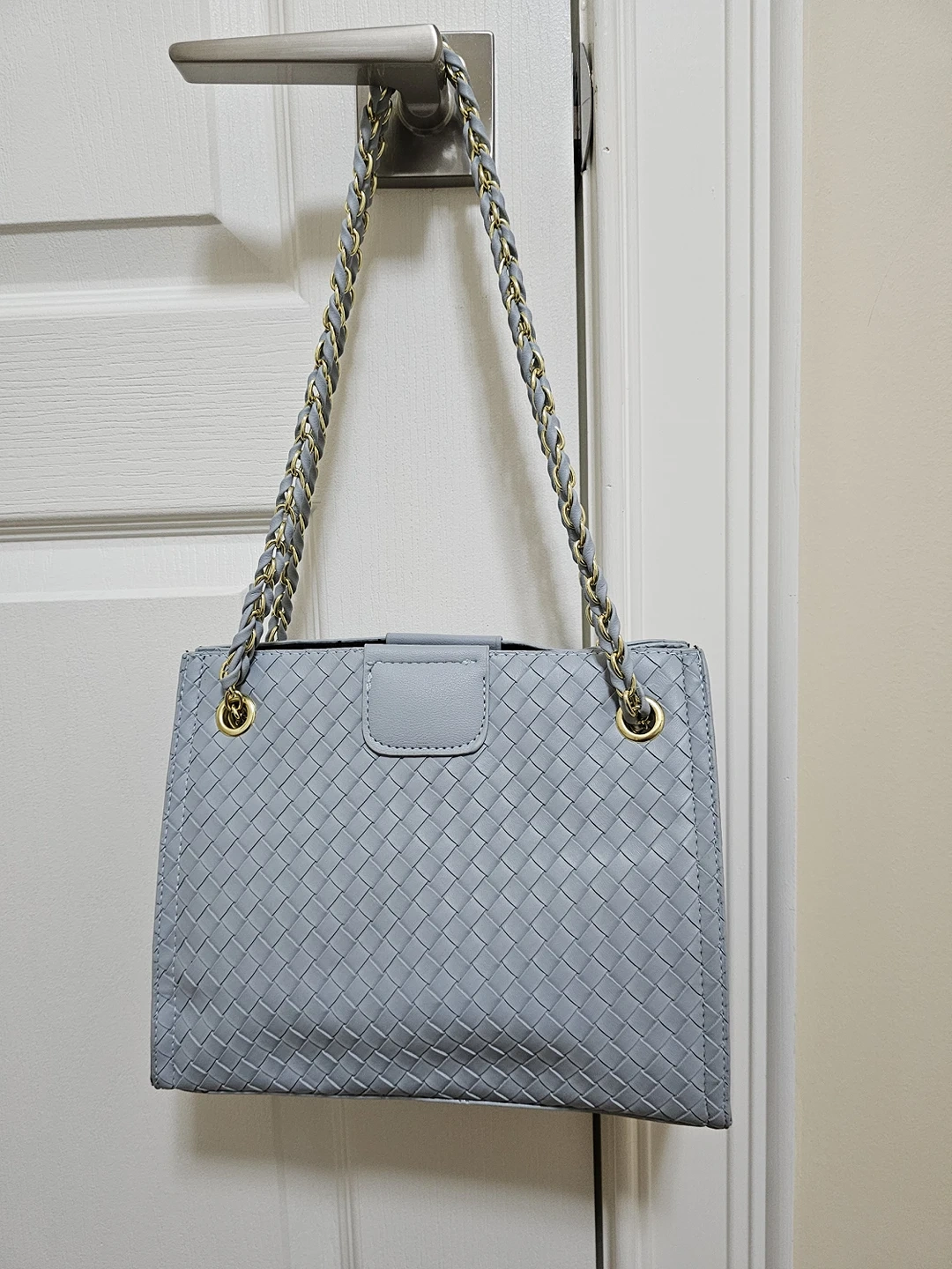Blue Faux Leather Shoulder Bag