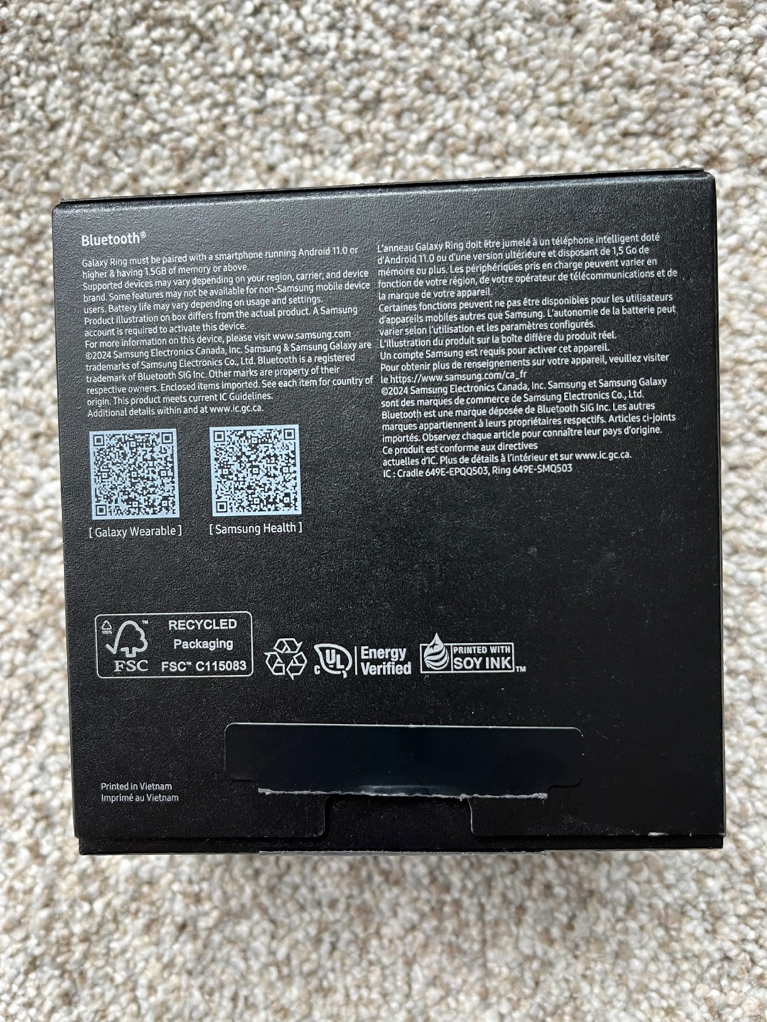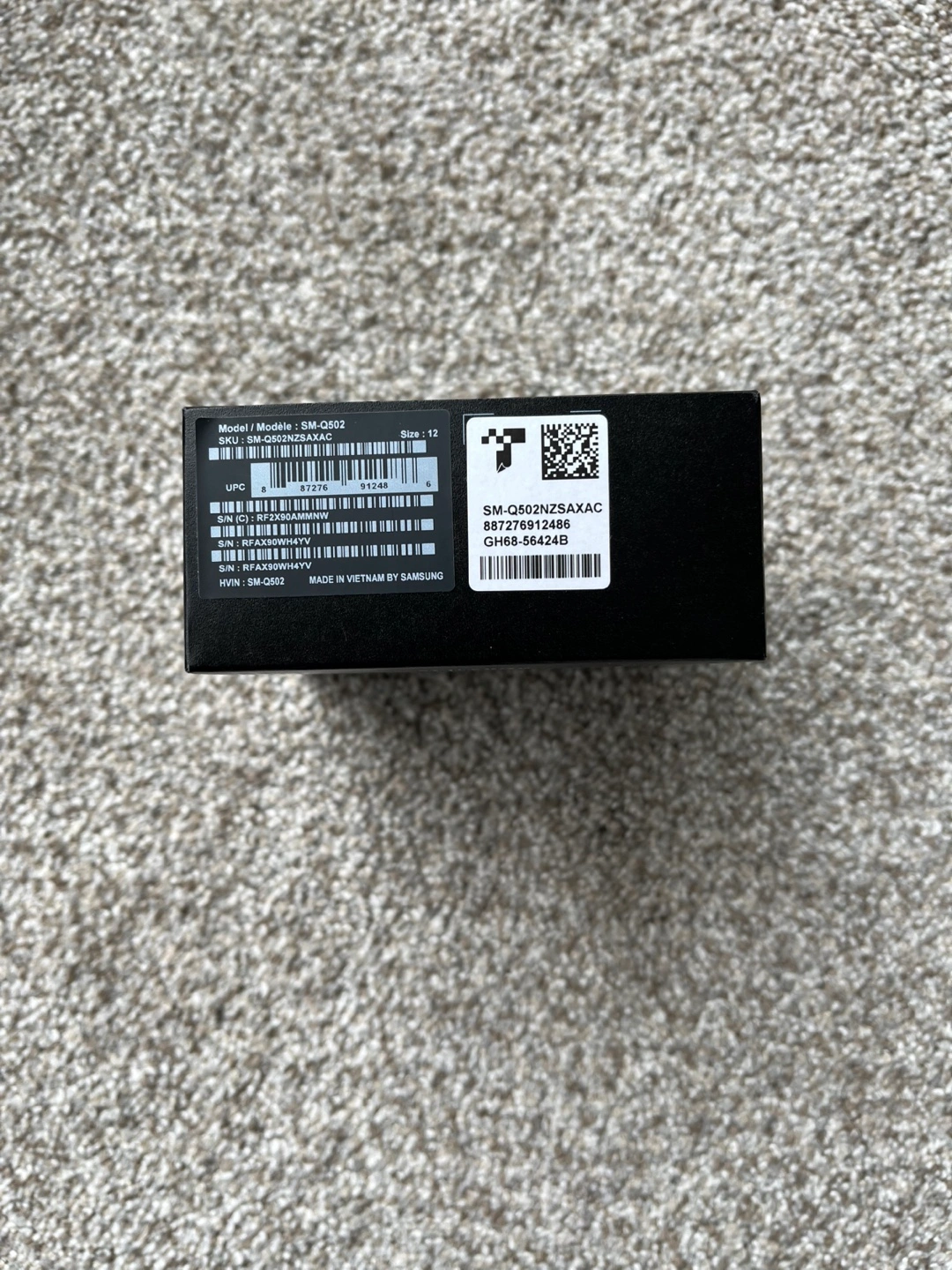 Selling a new Samsung Galaxy Ring, size 12! It's still in the box and has been used. The model number is SM-Q502.