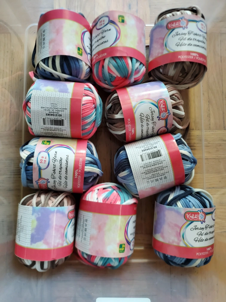 I have a collection of Knitit! Jersey T-shirt Yarn. Each skein contains 50g and 18m of yarn, perfect for your crafting projects. The yarn is 100% polyester and comes in various colours. Great for knitting, crochet, and other DIY projects! $5 for the lot - all 10 rolls.