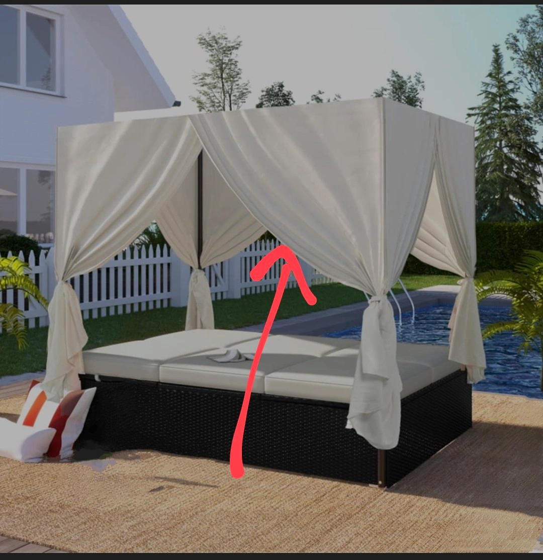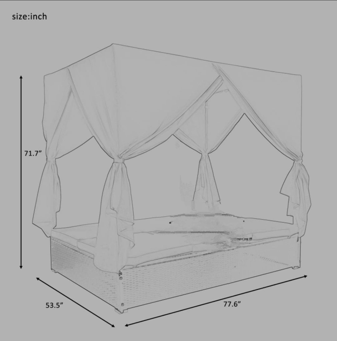 This outdoor daybed cover is perfect for protecting your furniture from the elements. It is in great condition and ready to use! The dimensions are 77.6 x 53.5 x 71.7 inches.