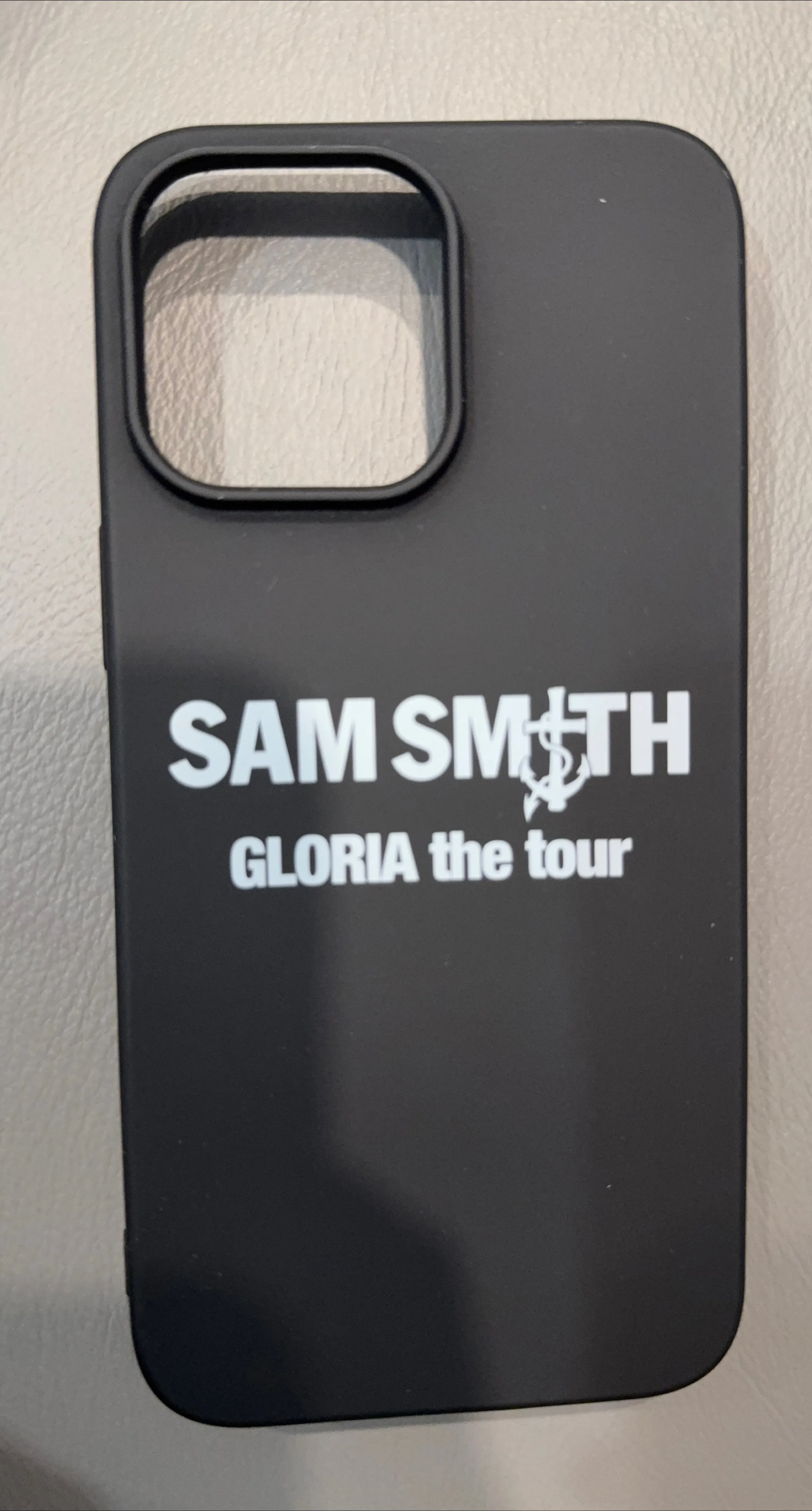 Selling a black iPhone case featuring the 'Sam Smith Gloria the tour' design. It's in great condition and ready for a new home! For iPhone 14 Pro Max. Cash and pick up.