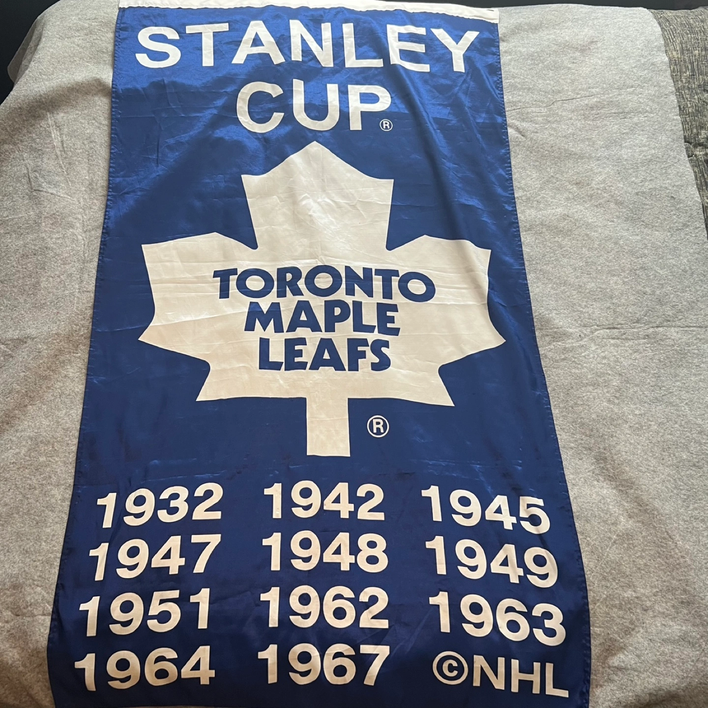 Selling a Toronto Maple Leafs Stanley Cup banner! It features the team's logo and years they won the Stanley Cup. Perfect for any Leafs fan to hang up!