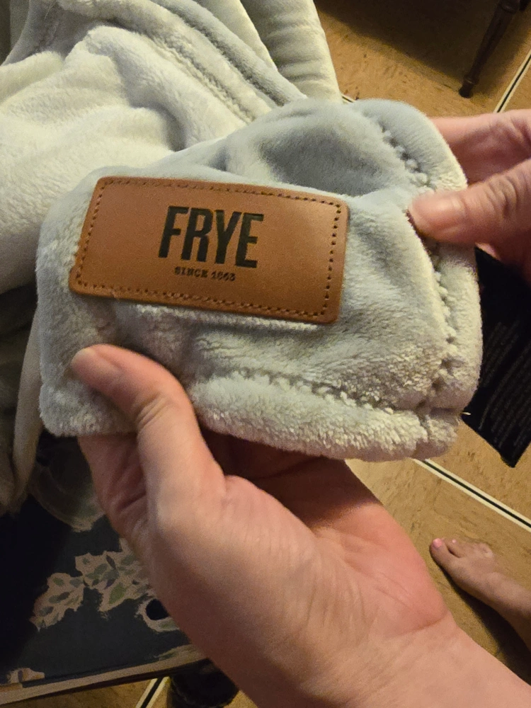 Cozy up with this soft grey Frye blanket! It's perfect as a throw for your couch or bed. The material is super plush and comfy, great for those chilly evenings. Get that Frye quality in a blanket!
