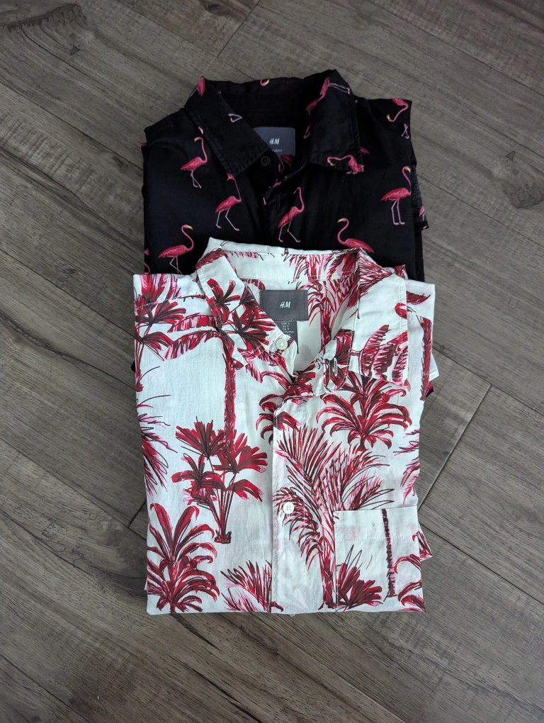 Selling two H&M short-sleeve button-up shirts, size Small: