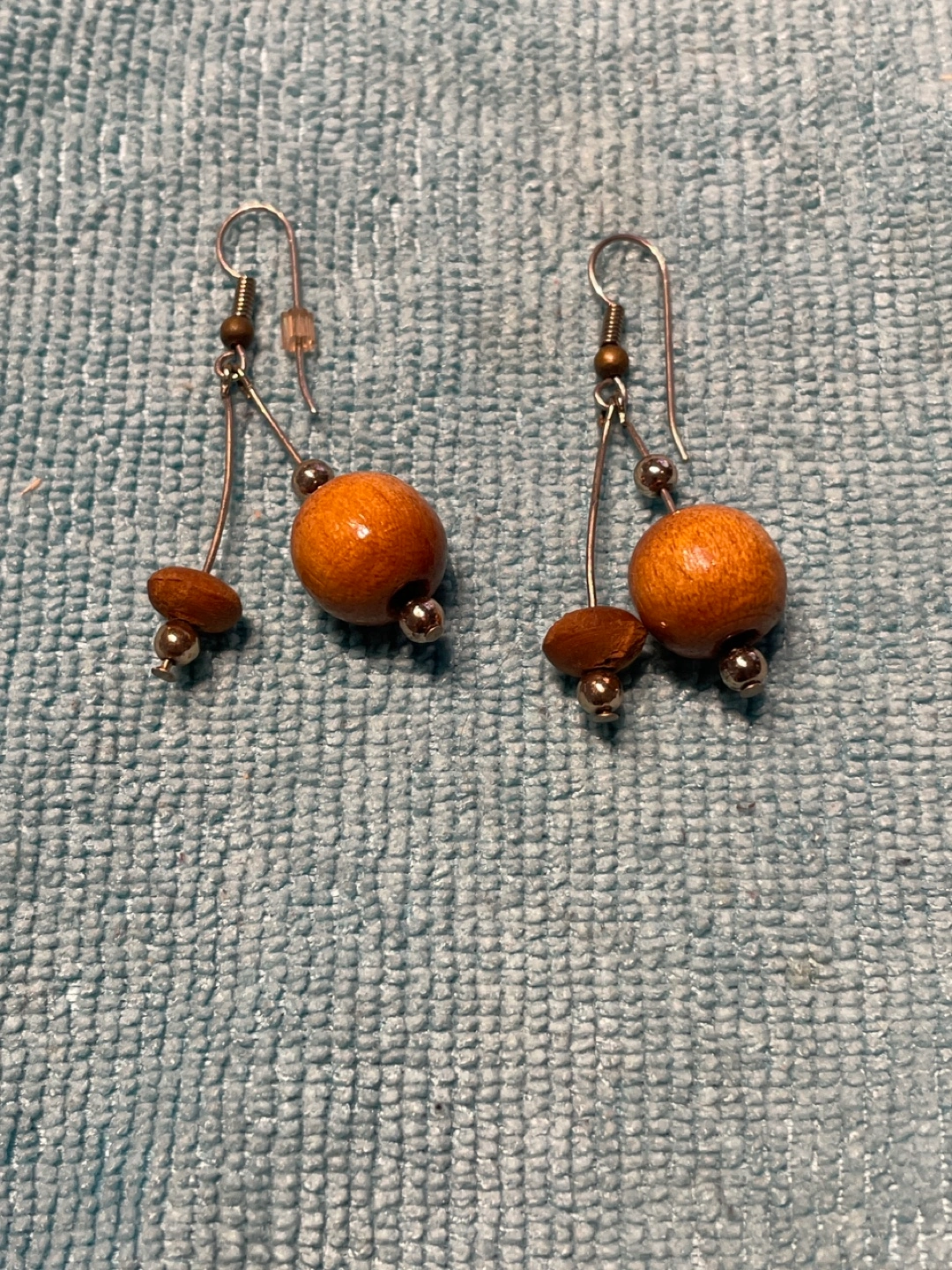Selling a pair of cute dangle earrings! They feature wooden beads and silver accents. Perfect for adding a natural touch to your outfit