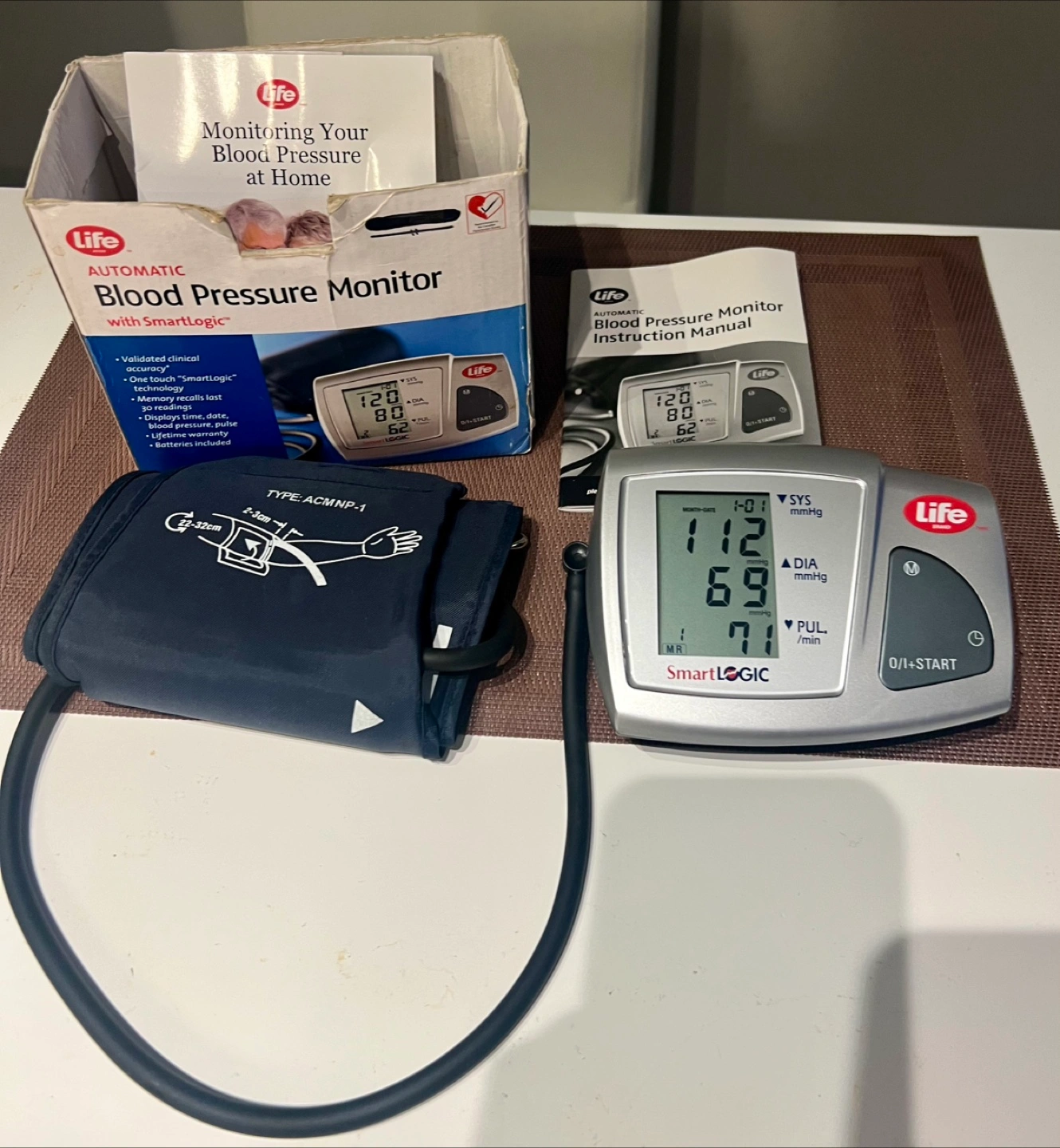In great condition and comes with box and instruction manual to monitor your blood pressure readings at home.