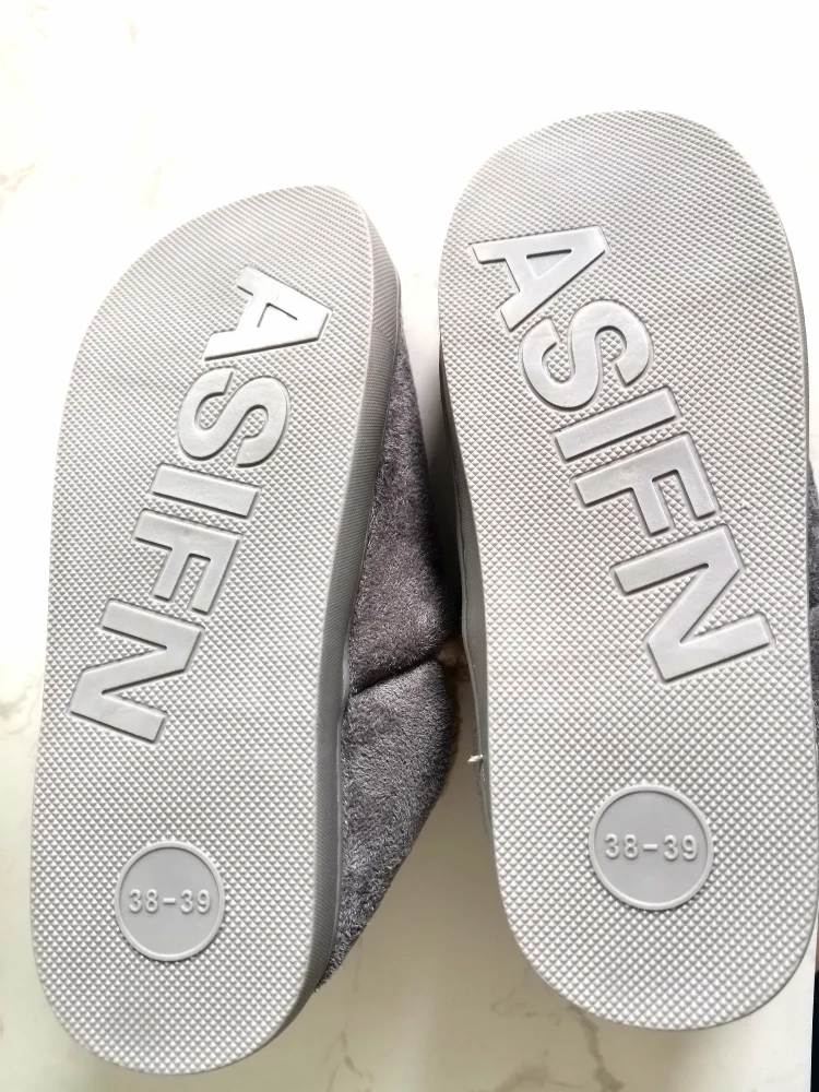 233Cozy up with these ASIFN slippers! They're a comfy grey colour and perfect for size 6.5 to 7.5. Great for keeping your feet warm on chilly days!