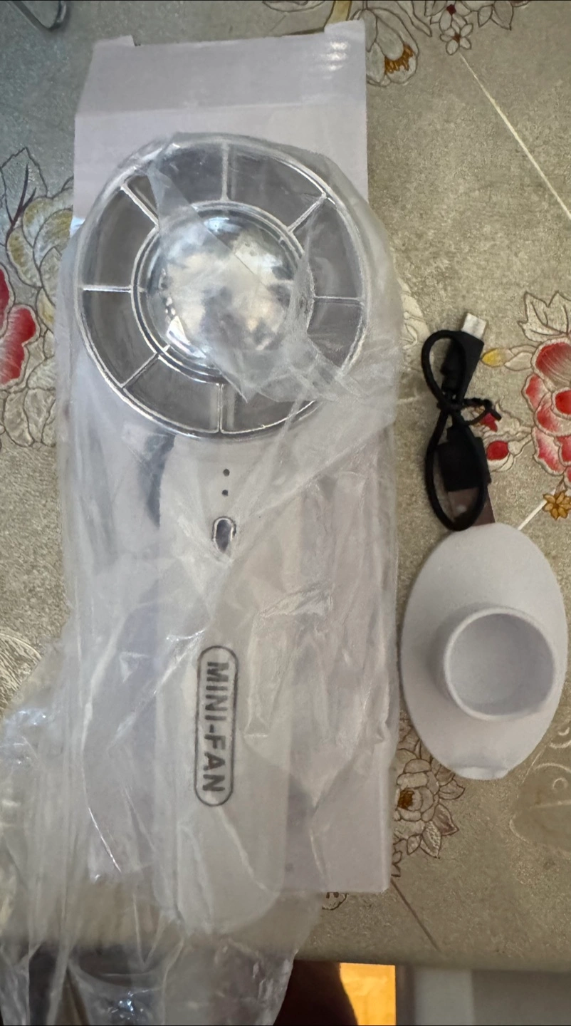Selling a brand new Mini-Fan T20 handheld fan in white! It's lightweight and portable, perfect for staying cool on the go. It also has three wind modes and can be used handheld or on a desktop. Comes with the box and charger!