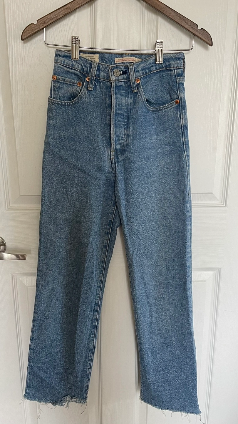 Levi's Ribcage Straight Ankle Jeans in size 24 are up for grabs! These jeans are in great condition and ready for a new home. They have a stylish, straight-leg cut that's perfect for any casual outfit. A classic addition to your wardrobe!
