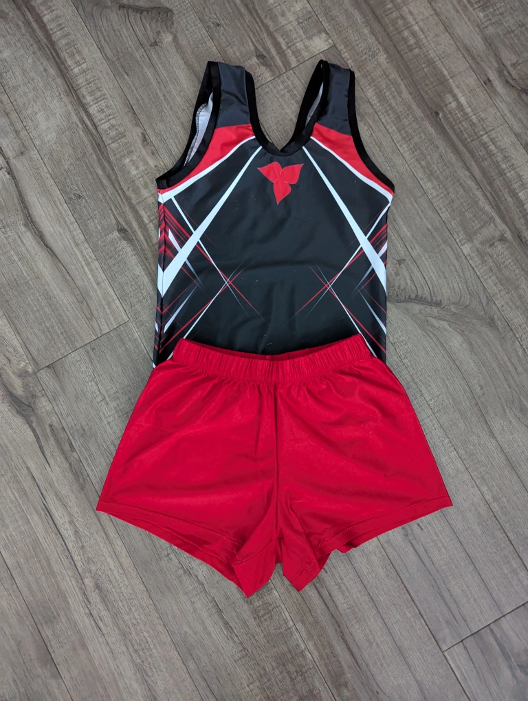 Selling a boys’ gymnastics suit with matching shorts.