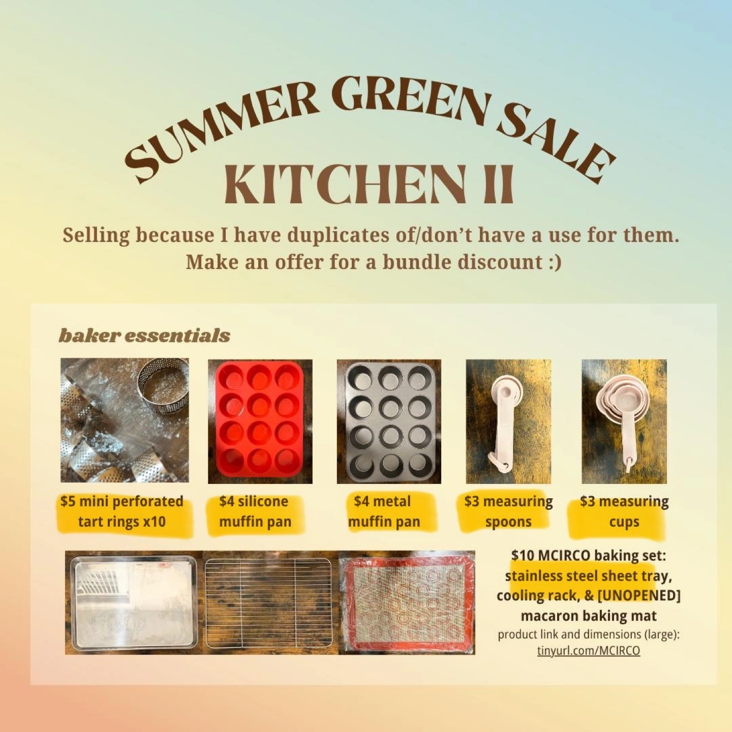 Selling kitchen essentials! Check the photos for details and pricing. Open to bundle offers :)