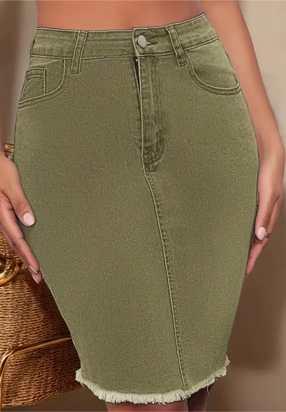 Olive Green Denim Skirt