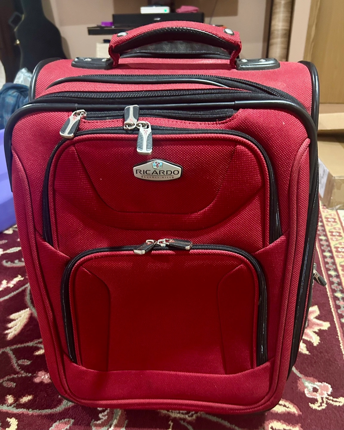 Stylish and durable red softside carry-on from Ricardo Beverly Hills β approx. 22β³ H Γ 14β³ L Γ 10β³ W. Ideal for travel, weekend getaways, or as a practical flight bag.