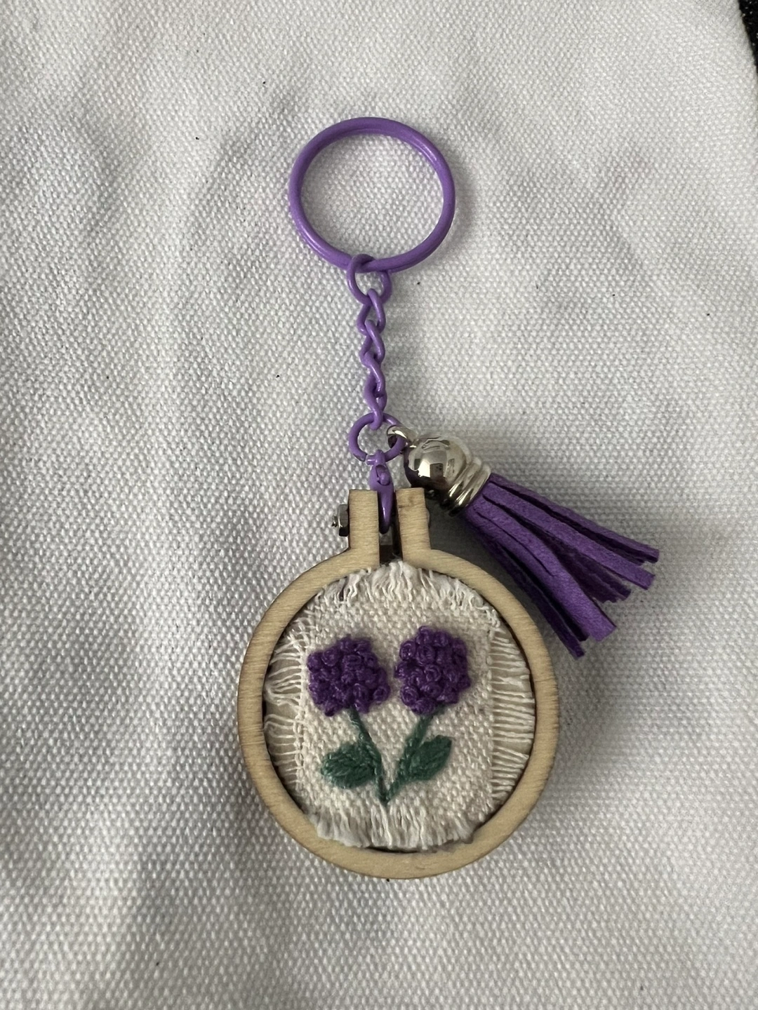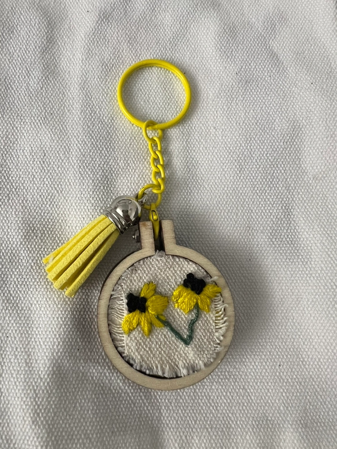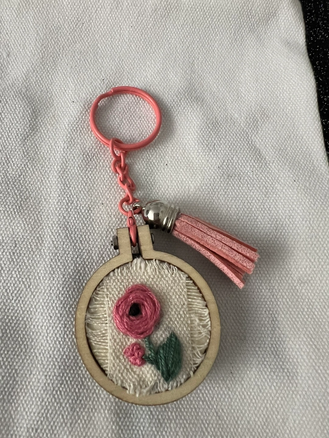 I'm selling these cute, handmade keychains! They feature unique embroidered designs on a small wooden frame with a matching tassel. Perfect for adding a personal touch to your keys or bag! Each for $10 dm for more information