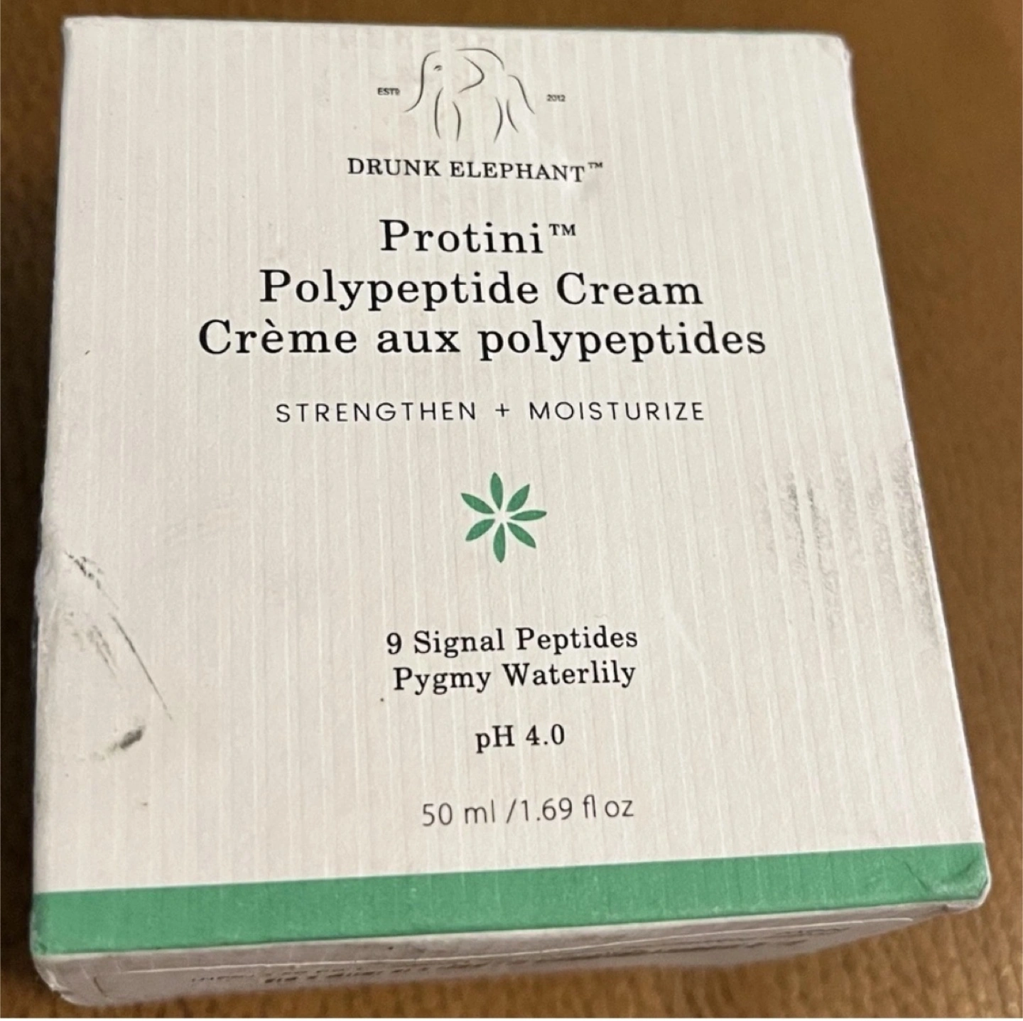 I'm selling a Drunk Elephant Protini Polypeptide Cream. It's designed to strengthen and moisturize with 9 signal peptides and pygmy waterlily. This protein moisturizer aims to improve skin tone, texture, and firmness, while reducing the appearance of lines, wrinkles, and sun damage. It comes in a 50 ml / 1.69 fl oz container