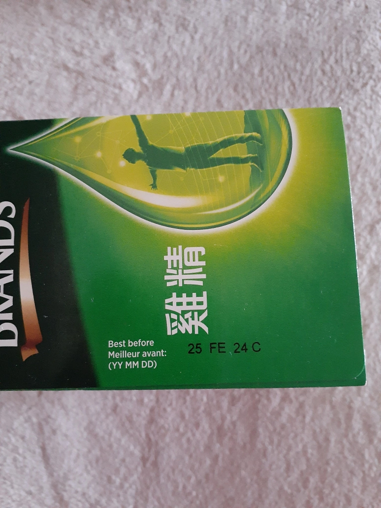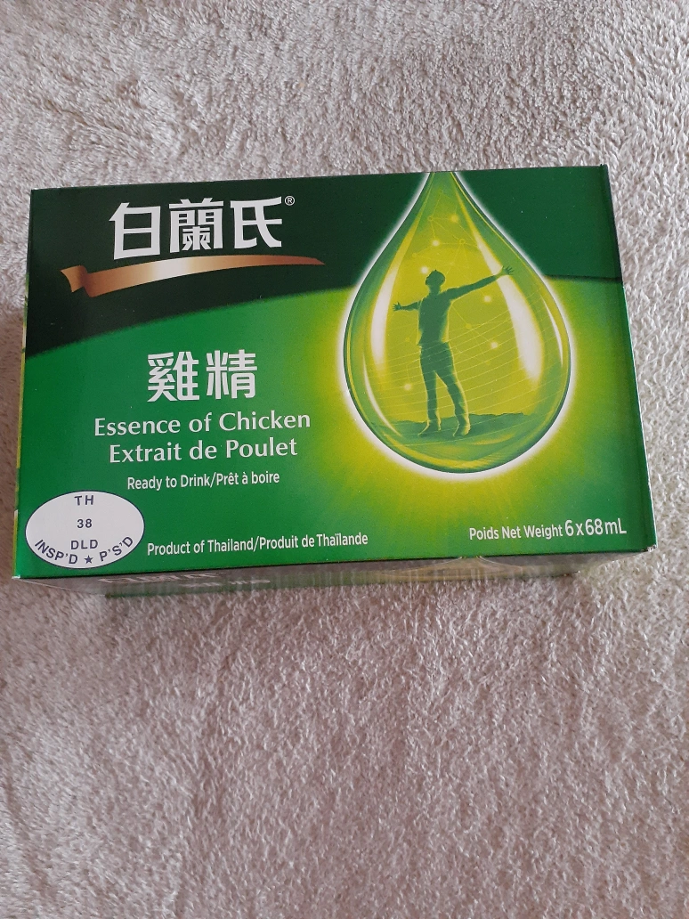 unopened box of Brand's Essence of Chicken drink. It's ready to drink and contains 6 bottles, each 68ml.
