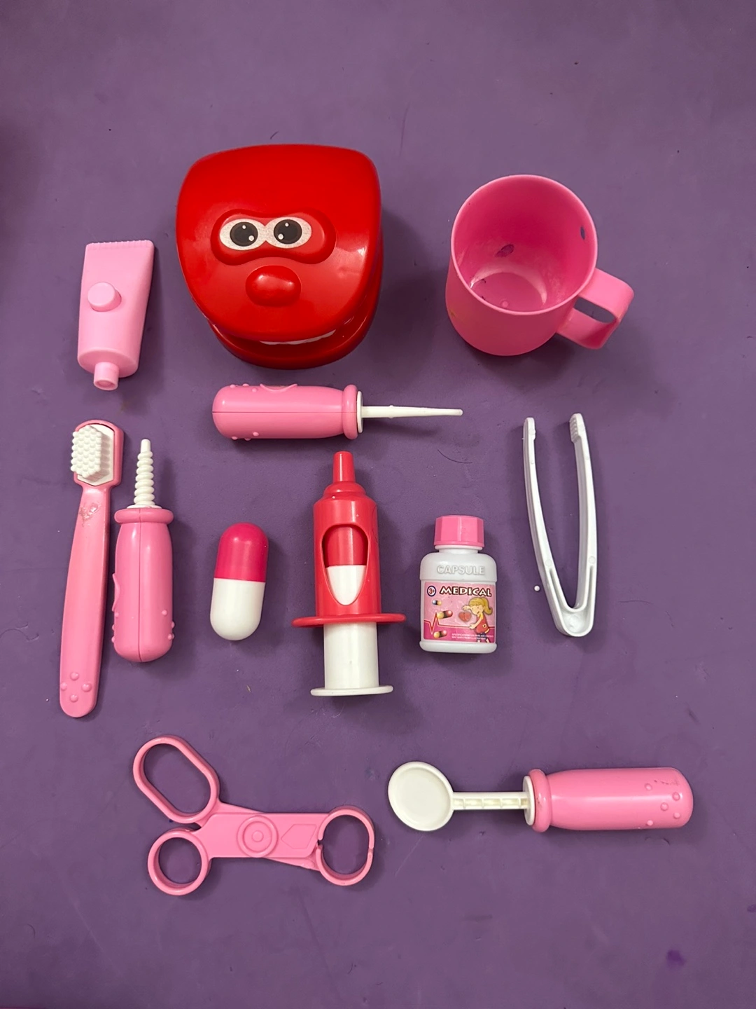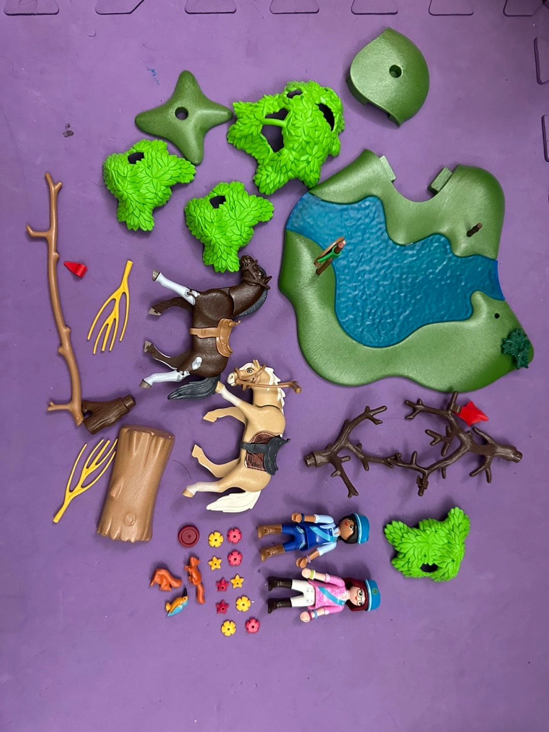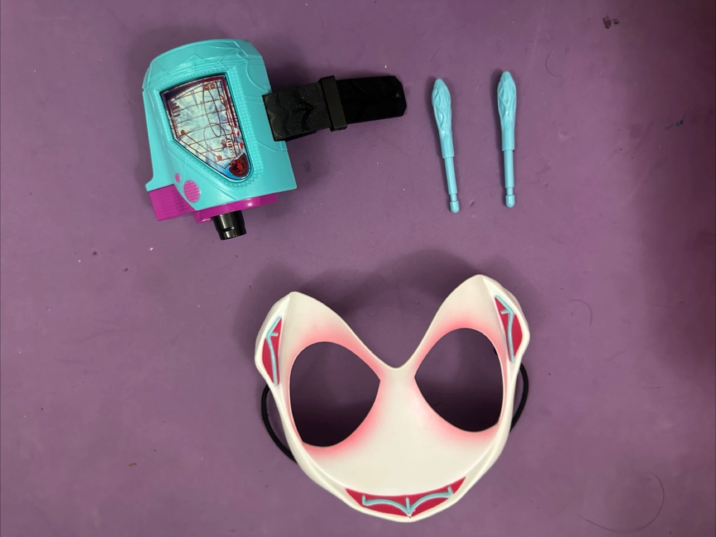 I have a mixed lot of toy items for free pick up. There's a Gwen Spider mask and web shooter, a toy medical kit, a shopping cart, and a Playmobil horse set. Great for imaginative play!