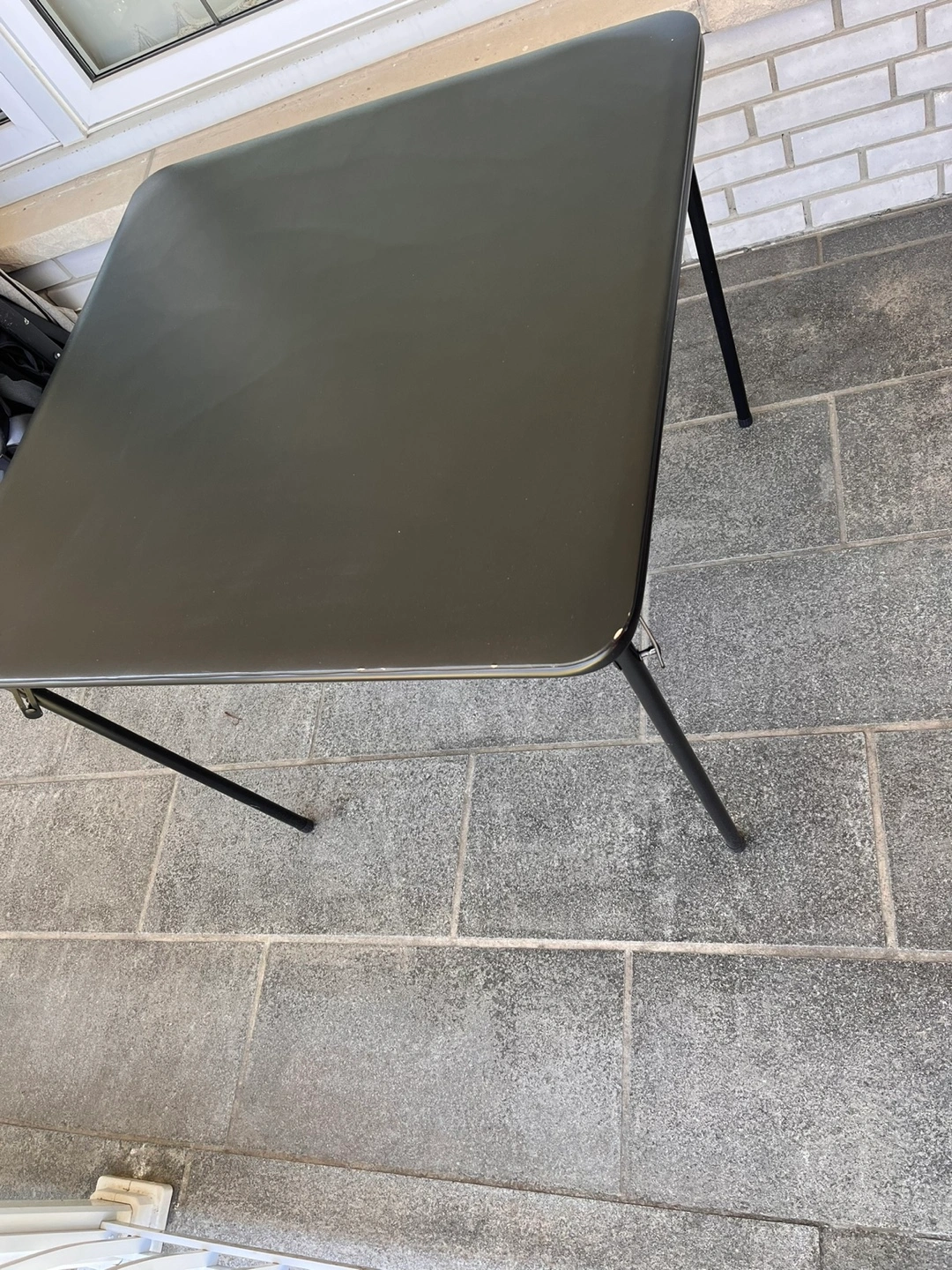 Selling a folding table in black. It's perfect for small spaces. Easy to transport and to store when not in use. It is in good condition.