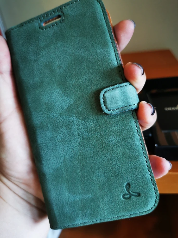 Selling a Snakehive Vintage Wallet case for iPhone XR in bottle green! It's in great condition and comes with the box. This stylish wallet case is made of high-quality leather and offers excellent protection for your phone. It also has slots for cards and cash, making it a convenient all-in-one solution.