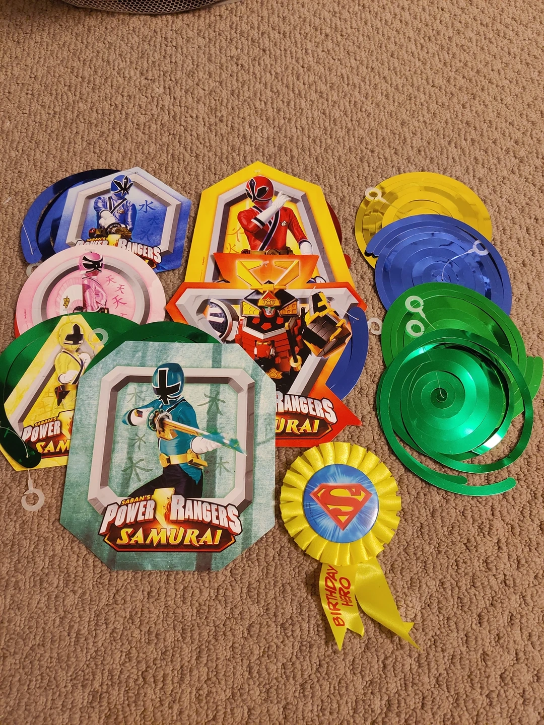Power Ranger Samurai decoration and 1 superman birthday pin. Used once and didn't want to waste it by throwing it in the trash. I'm sure another kid can enjoy them. Pickup from Richmond.