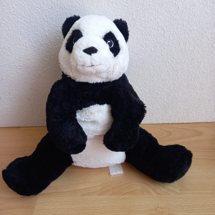 Selling a cuddly panda plush toy! It's in great shape and ready for a new home. This adorable panda is soft and huggable, perfect for kids or anyone who loves pandas