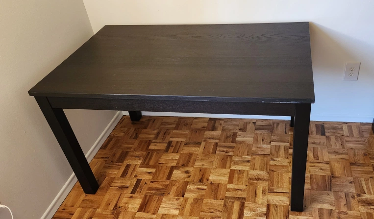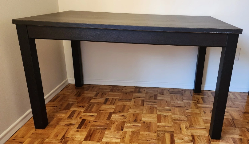 Selling Laneberg IKEA extendable dining table in black-brown. It's in good condition(minor scratches) and perfect for small spaces that need a little extra room for guests! Cash Only.