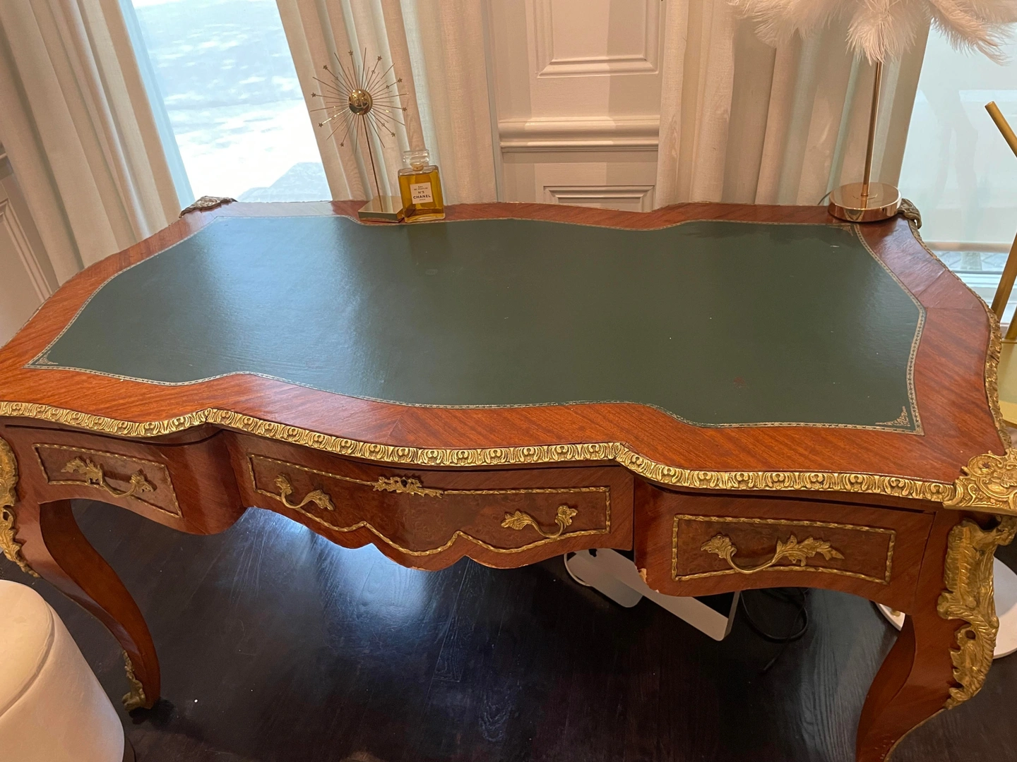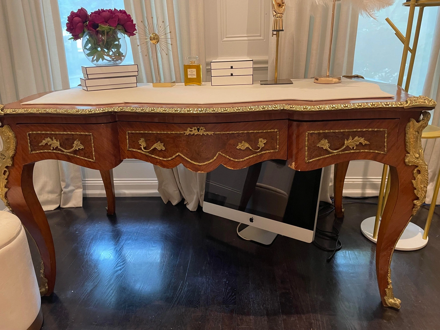 Louis XV style desk - 3 draws , with marquetry and gold detailing.